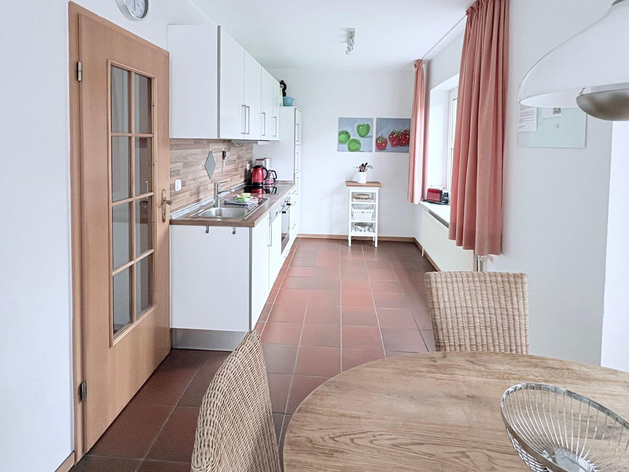 Im Erdgeschoss erwartet Sie ein großzügiger Wohn- und Essbereich mit einer offenen Küche, die mit modernen Annehmlichkeiten wie Elektroherd, Backofen, Dunstabzugshaube, Kühlschrank, Mikrowelle, Geschirrspülmaschine, Kaffeemaschine, Handmixer und Toaster bestens ausgestattet ist. Der geschmackvoll eingerichtete Wohnbereich bietet Sat-TV, Stereoanlage und einen DVD-Player. Für unsere kleinen Gäste steht ein Hochstuhl zur Verfügung, und es gibt ein separates WC im Erdgeschoss.