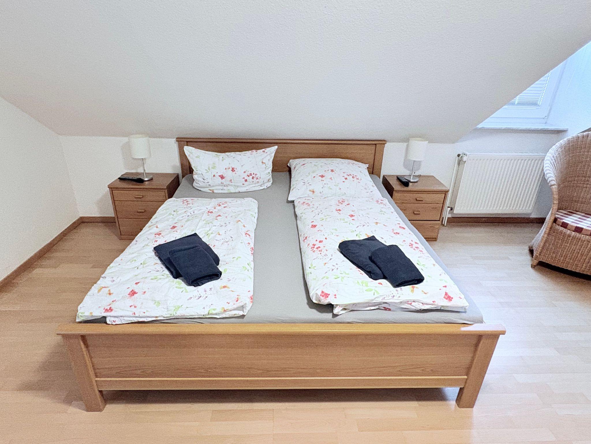 • Zwei gemütliche Schlafzimmer im Obergeschoss (Doppelbett im ersten, zwei Einzelbetten und Kinderreisebett im zweiten)