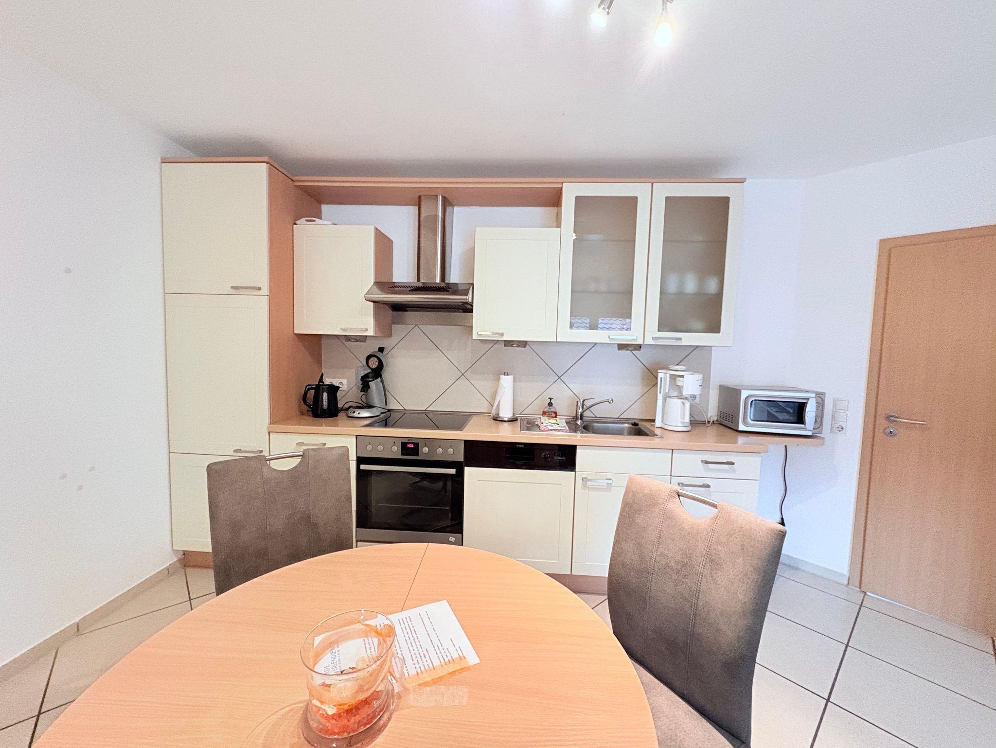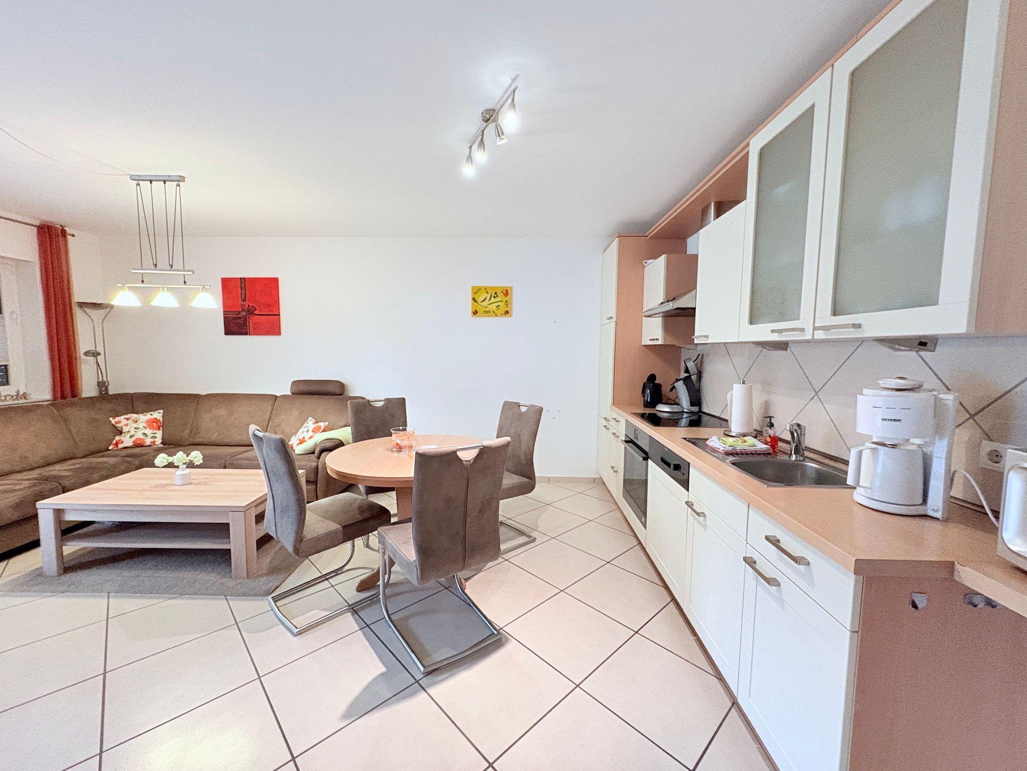 • Komfortable Küchenausstattung: Cerankochfeld, Backofen, Kühlschrank, Spülmaschine, Kaffeemaschine, Toaster, Warmwasserbereiter, umfangreiches Geschirr