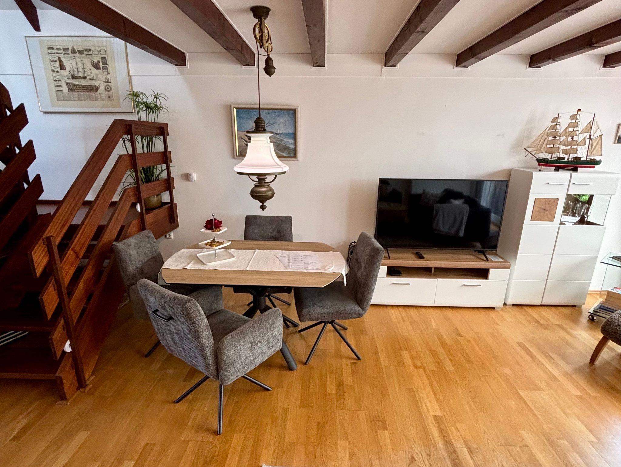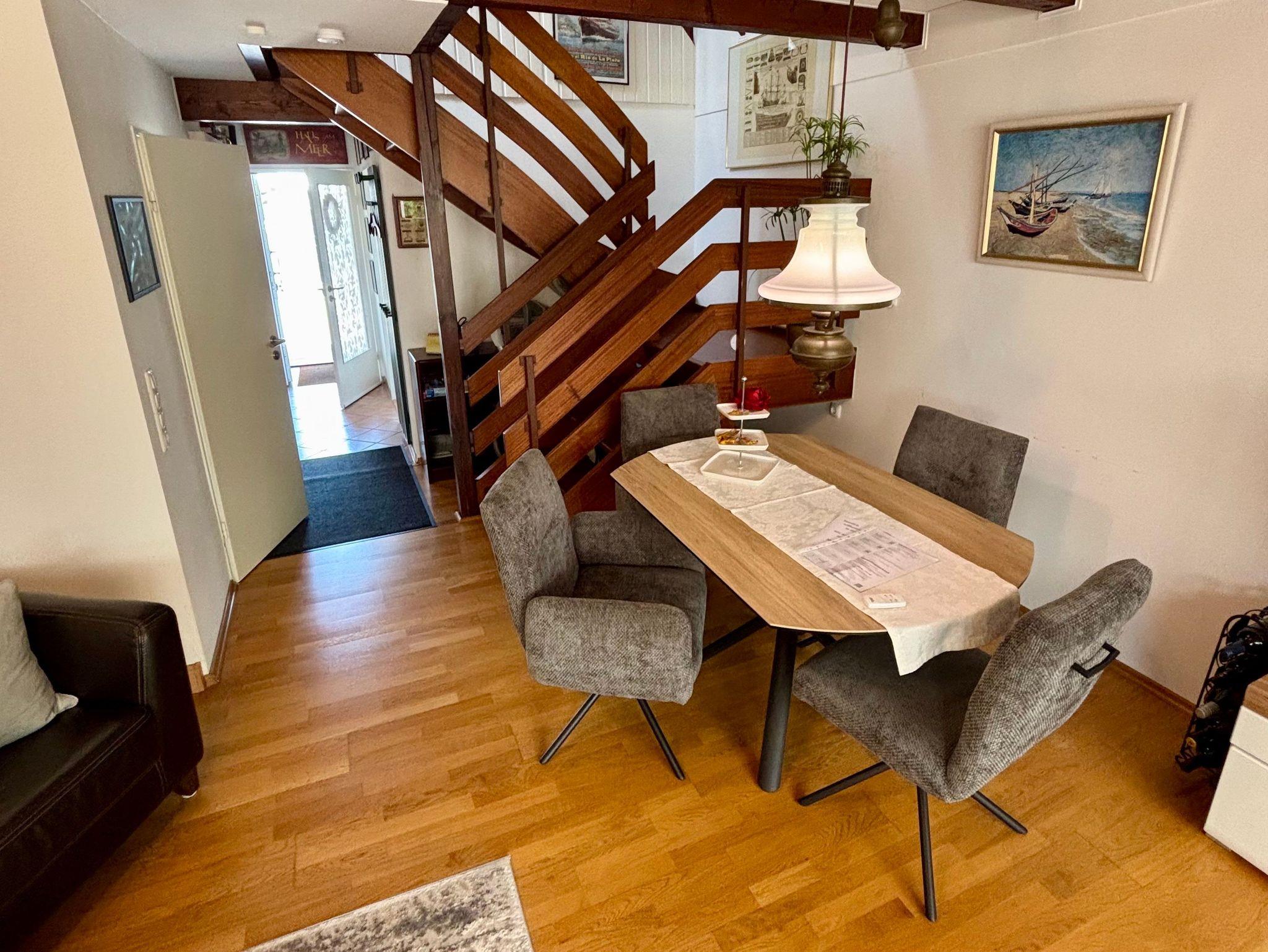 Das Haus bietet zwei gemütliche Schlafzimmer im Obergeschoss, beide mit komfortablen Doppelbetten ausgestattet. Im Erdgeschoss lädt das helle Wohnzimmer mit gemütlicher Sitzecke und angrenzendem Essbereich zum Verweilen ein. Die separate Küche ist hochwertig und vollständig ausgestattet ? mit Kaffevollautomat, Mikrowelle, Heißluftfritteuse und allem, was Sie für genussvolle Urlaubstage brauchen.