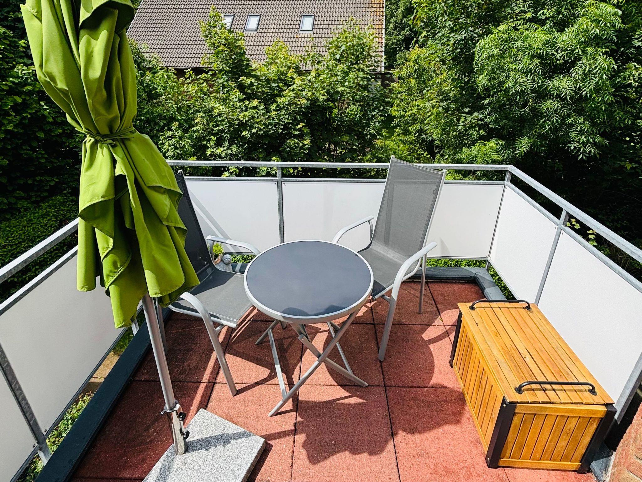 Vom Balkon aus haben Sie einen wunderschönen Blick in die umliegenden Gärten mit altem Baumbestand. Durch die südwestliche Ausrichtung können Sie die Sonne bis in den Abend hinein genießen. Das Schlafzimmer liegt in nördlicher Richtung und ist auch an heißen Sommertagen immer noch angenehm temperiert. Auf dem großzügigen Balkon finden Sie zudem einen hochwertigen Elektrogrill von Weber.
