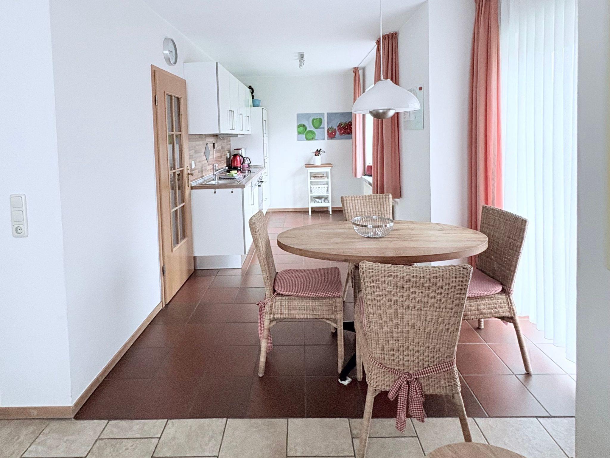 Im Erdgeschoss erwartet Sie ein großzügiger Wohn- und Essbereich mit einer offenen Küche, die mit modernen Annehmlichkeiten wie Elektroherd, Backofen, Dunstabzugshaube, Kühlschrank, Mikrowelle, Geschirrspülmaschine, Kaffeemaschine, Handmixer und Toaster bestens ausgestattet ist. Der geschmackvoll eingerichtete Wohnbereich bietet Sat-TV, Stereoanlage und einen DVD-Player. Für unsere kleinen Gäste steht ein Hochstuhl zur Verfügung, und es gibt ein separates WC im Erdgeschoss.
