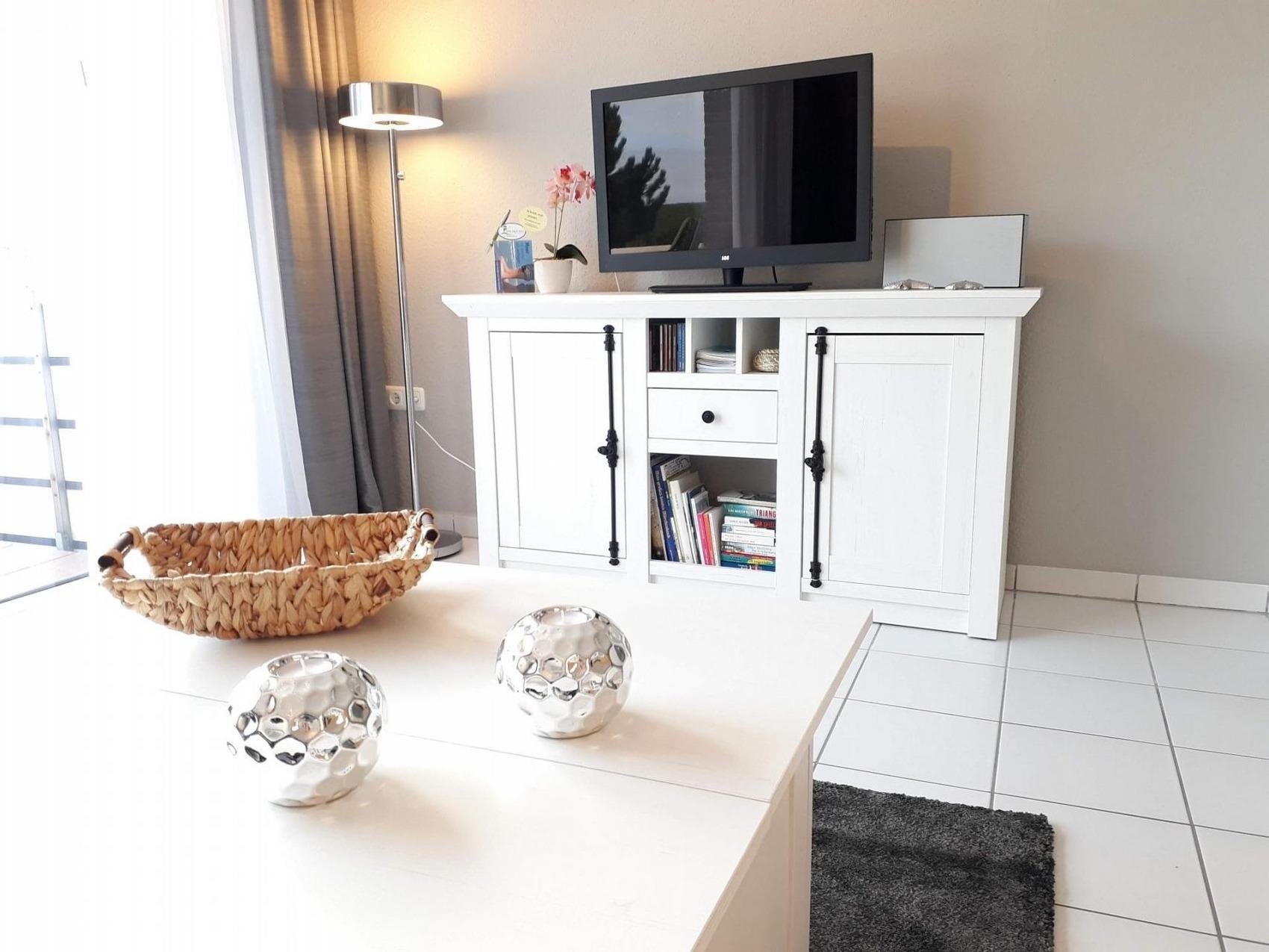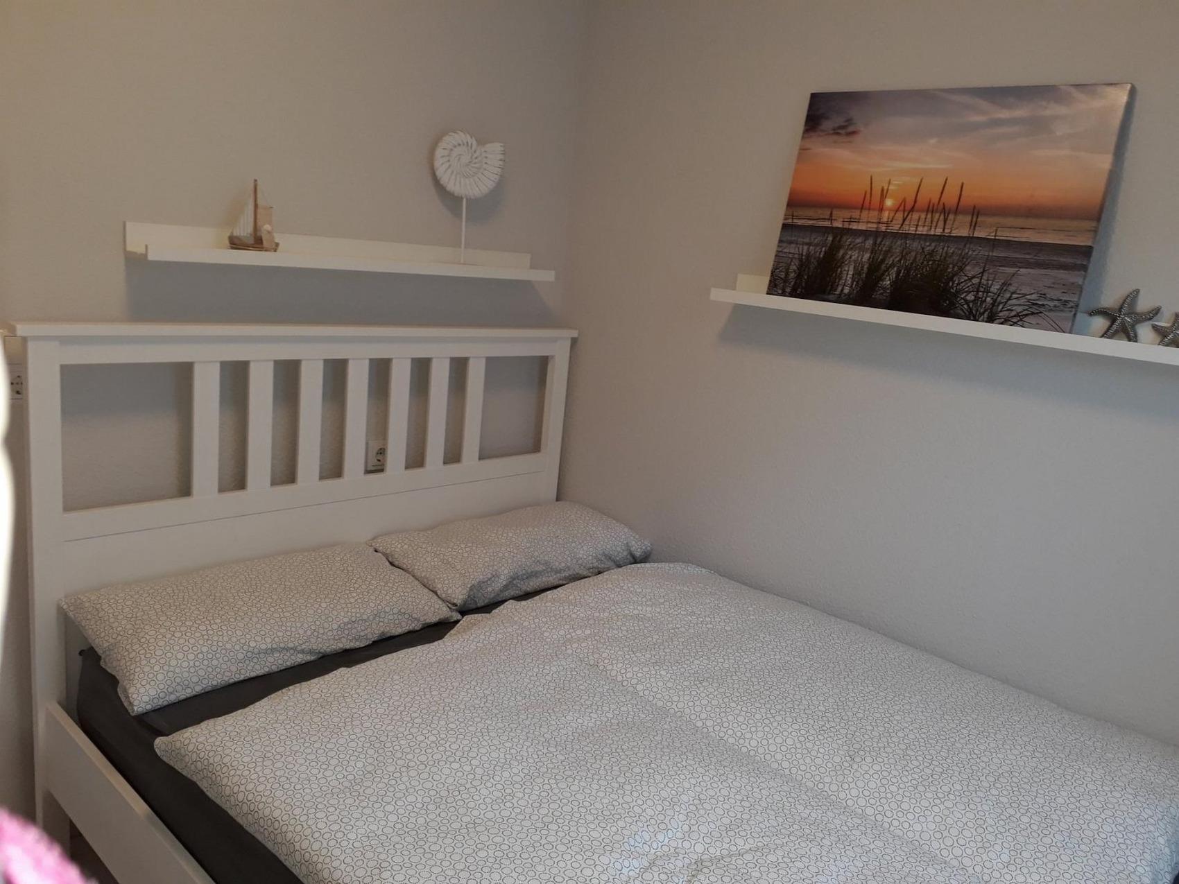 Das Wohn- und Schlafzimmer sowie der Flur mit Garderobe wurden frisch renoviert und sind komplett neu möbliert.Durch den Flur mit Garderobe betritt man das geschmackvoll eingerichtete Wohnzimmer. Dort befindet sich ein modernes, ausziehbares Schlafsofa für zwei weitere Personen. Ein großer Fernseher, CD-Radio, CDs, Gesellschaftsspiele, Bücher, etc. sind hier natürlich ebenfalls vorhanden.Eine integrierte, gut ausgestattete Küchenzeile (4 Cerankochfelder, Backofen, Dunstabzugshaube, Kühlschrank, Toaster, Wasserkocher, Eierkocher, Brotschneidemaschine, Senseo-Pad, klassische Kaffeemaschine), Bügeleisen, Wäscheständer und Kinderhochstuhl runden das Bild ab.Vom Flur aus gelangt man auch in das Schlafzimmer mit einem bequemen Doppelbett (1,40 m x 2 m) für zwei Personen und einem Kleiderschrank.WLAN ist selbstverständlich kostenfrei verfügbar.Die Wohnung ist perfekt für 2 bis 3 Personen geeignet. Bei Nutzung aller vorhandenen Schlafmöglichkeiten (Doppelbett im Schlafzimmer und 2-er Schlafsofa im Wohnzimmer) finden aber sogar 4 Personen einen bequemen Schlafplatz. Unser Tipp: Die Toppermatratze aus dem Schlafzimmer passt bei Bedarf perfekt auf das ausgezogene Schlafsofa im Wohnzimmer. Die Betten für das Schlafsofa befinden sich im Sofabettkasten.