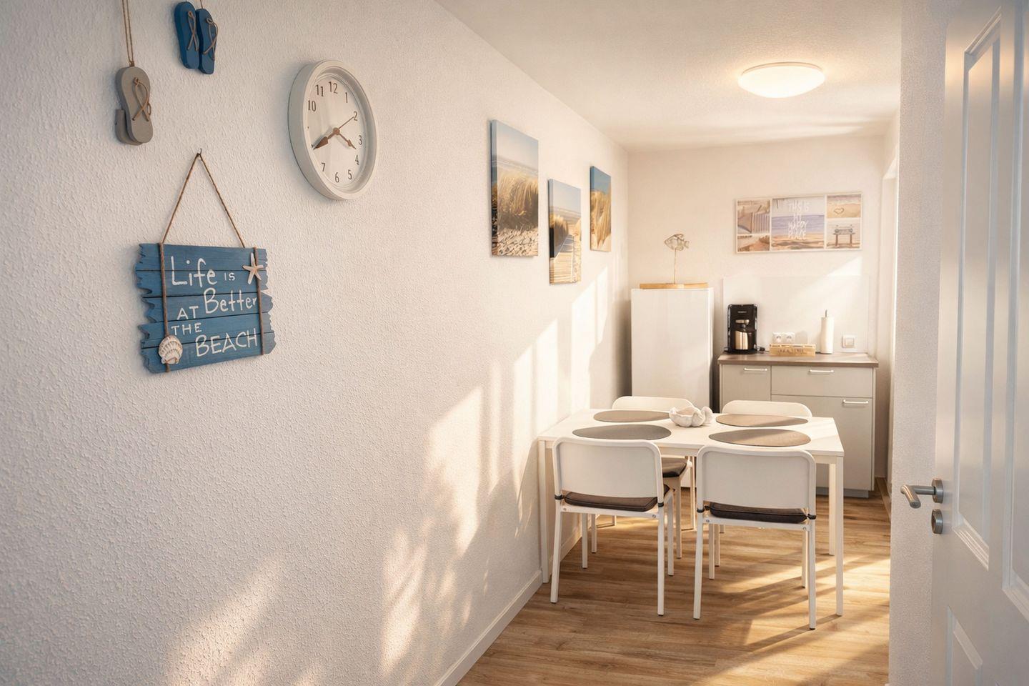 Die liebevoll eingerichtete Ferienwohnung Strandlust bietet auf rund 43 Quadratmetern Wohnfläche ein gemütliches und komfortables Urlaubsdomizil in ruhiger Sackgassenlage in Friesenhörn, einem beliebten Ortsteil von Horumersiel. Die ebenerdige Lage im Hochparterre sorgt für einen bequemen Zugang und macht die Wohnung besonders attraktiv für Paare, kleine Familien oder Gäste mit Hund. Mit ihrer durchdachten Raumaufteilung bietet die Ferienwohnung ausreichend Platz für bis zu drei Personen und schafft eine angenehme Wohlfühlatmosphäre, in der Sie Ihren Urlaub von Anfang an genießen können.