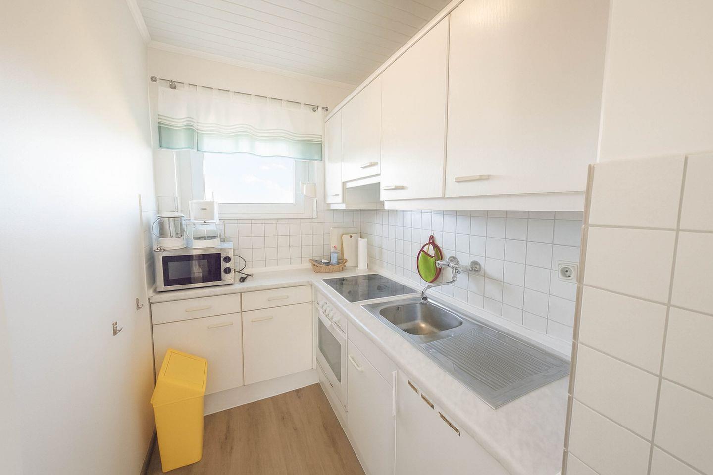 Die separate Küche ist funktional und gut ausgestattet und verfügt über einen Backofen mit Ceranfeld, Kühlschrank, Kaffeemaschine, Wasserkocher und Toaster, sodass Sie sich problemlos selbst versorgen können.