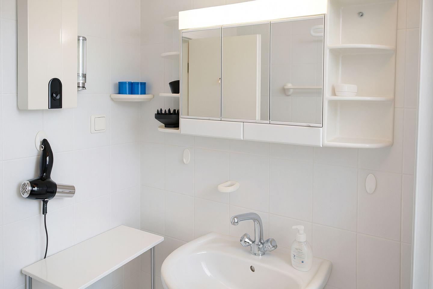 Das Badezimmer mit Dusche und WC überzeugt durch ein Tageslichtfenster und ist zusätzlich mit einem Haartrockner ausgestattet. Ein eigener Parkplatz direkt vor dem Haus sorgt für stressfreie An- und Abreise. Darüber hinaus können Sie den Abstellraum am Haus nutzen, in dem Ihnen zwei Fahrräder kostenfrei zur Verfügung stehen – ideal, um die Umgebung und die Nordseeküste aktiv zu erkunden.