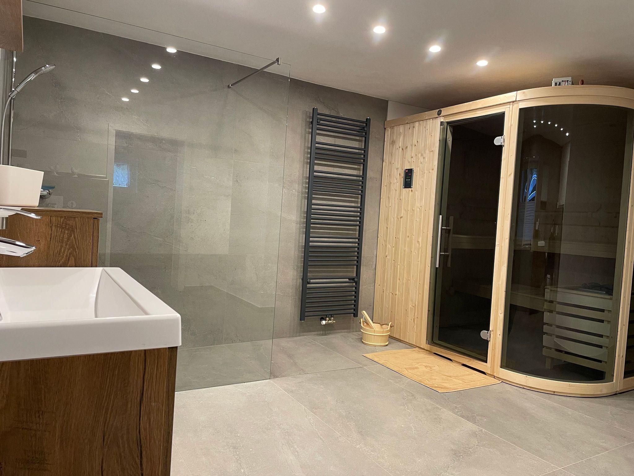 Im Keller befindet sich ein weiteres Badezimmer mit Sauna.