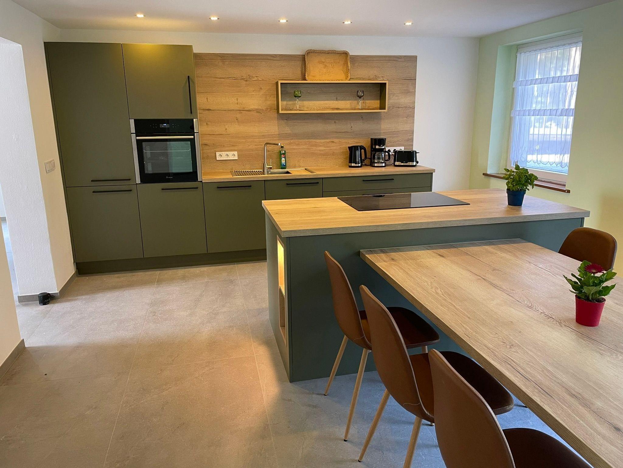 Die kombinierte Wohnküche ist komplett ausgestattet.