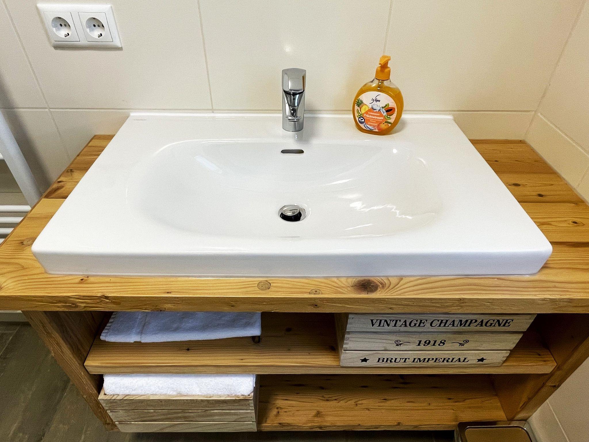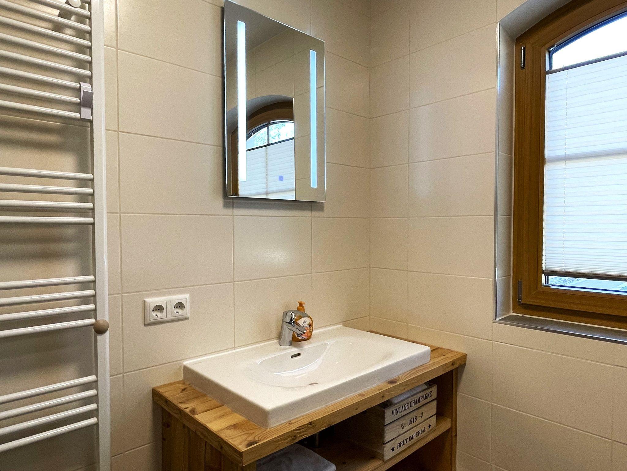 Die beiden Schlafzimmer sind mit handgefertigten Doppelbetten oder getrennten Einzelbetten ausgestattet. Die Betten sind bereits bezogen und versprechen einen erholsamen Schlaf. Das moderne Bad verfügt über eine bodengleiche Dusche, einen Waschtisch mit Spiegel, Handtuchwärmer und WC.