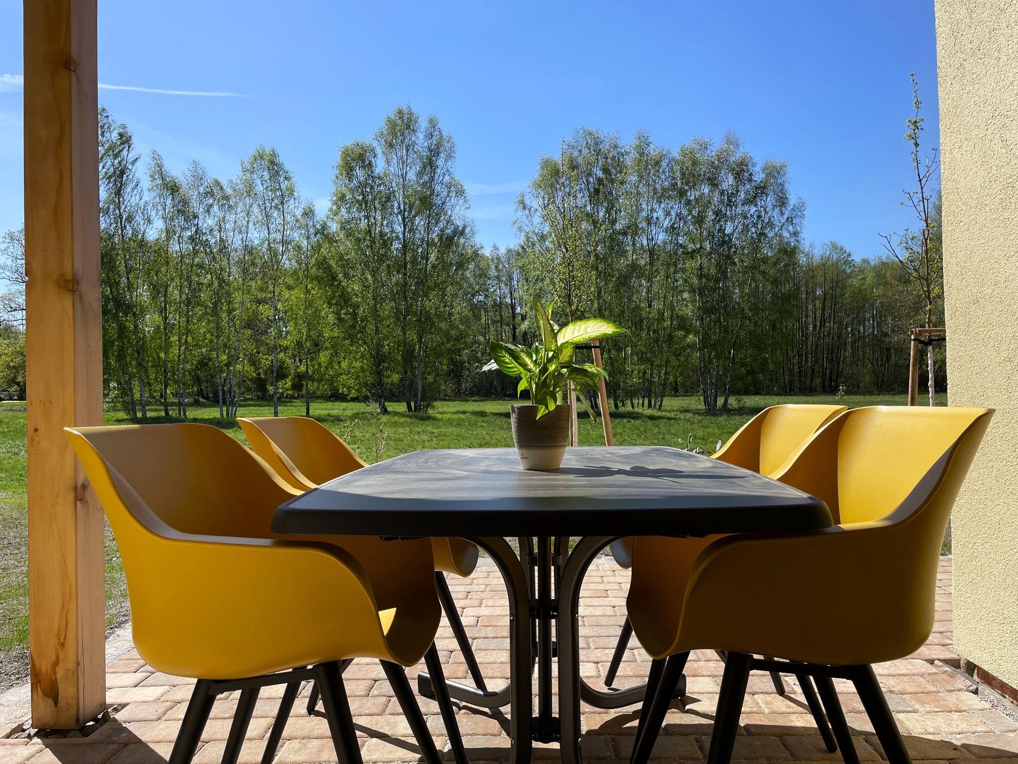 Die Terrasse führt direkt ins Freie. Die gemütlichen Terrassenmöbel laden zum Verweilen ein - sei es, um die frische Luft zu genießen, zum Essen oder einfach nur zum Entspannen. Die Terrasse ist der ideale Ort, um die ländliche Ruhe zu erleben und die Schönheit der Natur zu spüren.
