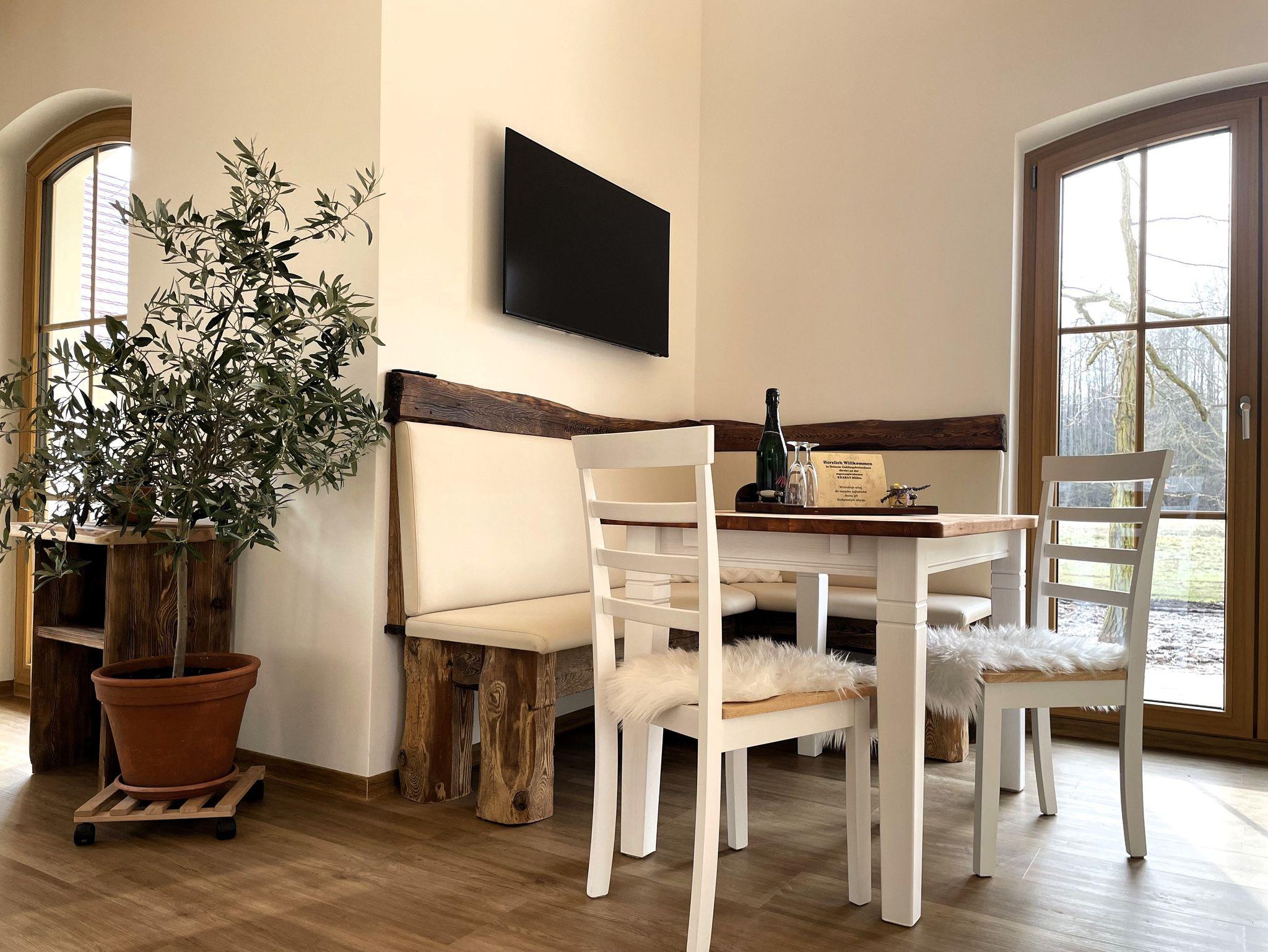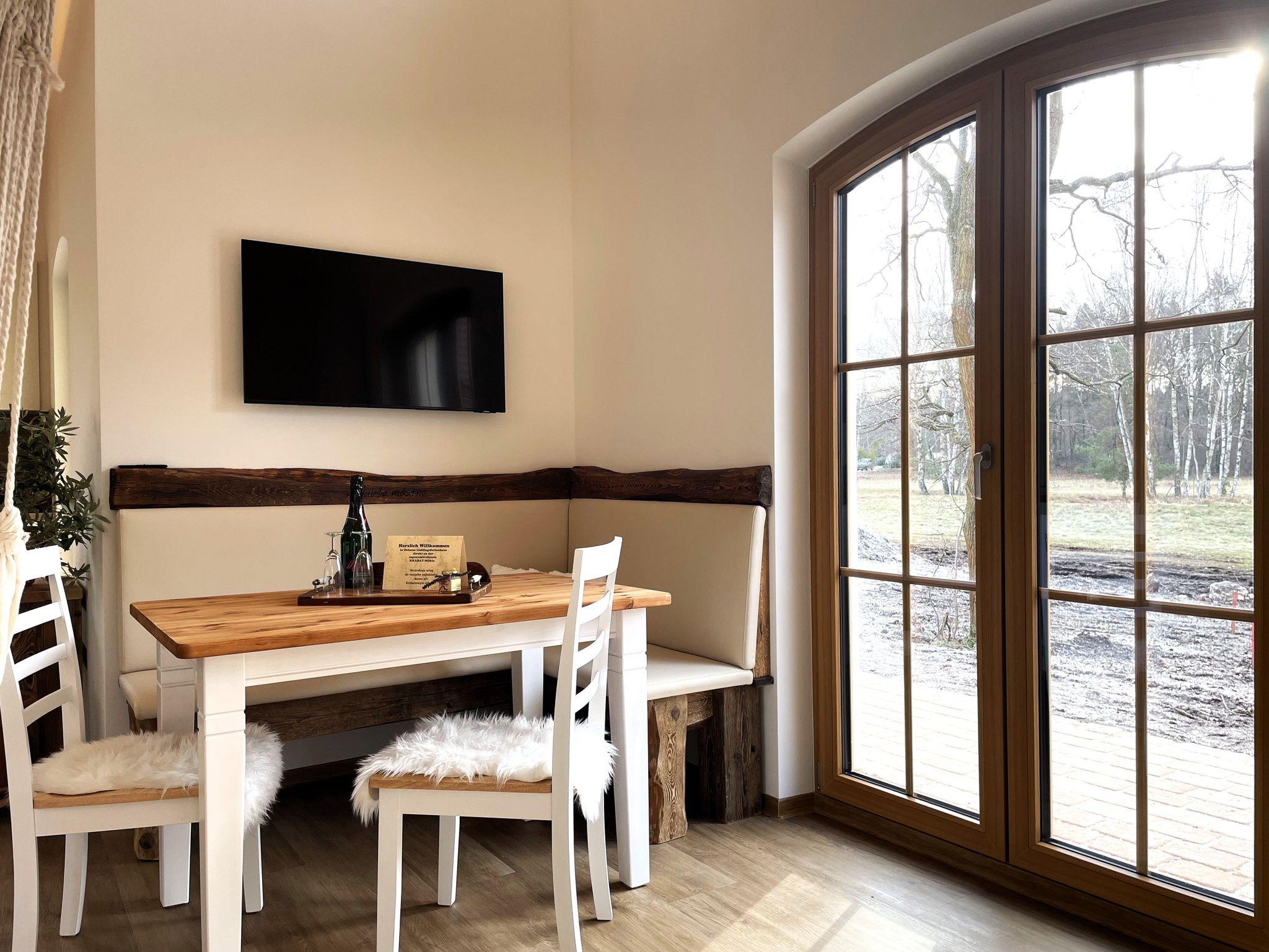 Das Ferienhaus bietet auch einen direkten Zugang zur Terrasse, die mit Terrassenmöbeln ausgestattet ist. Hier können Sie die frische Luft genießen, im Freien essen oder einfach nur entspannen. Die Terrasse ist ein idealer Ort, um die Liebe zur Heimat zu spüren und die ländliche Ruhe zu genießen.