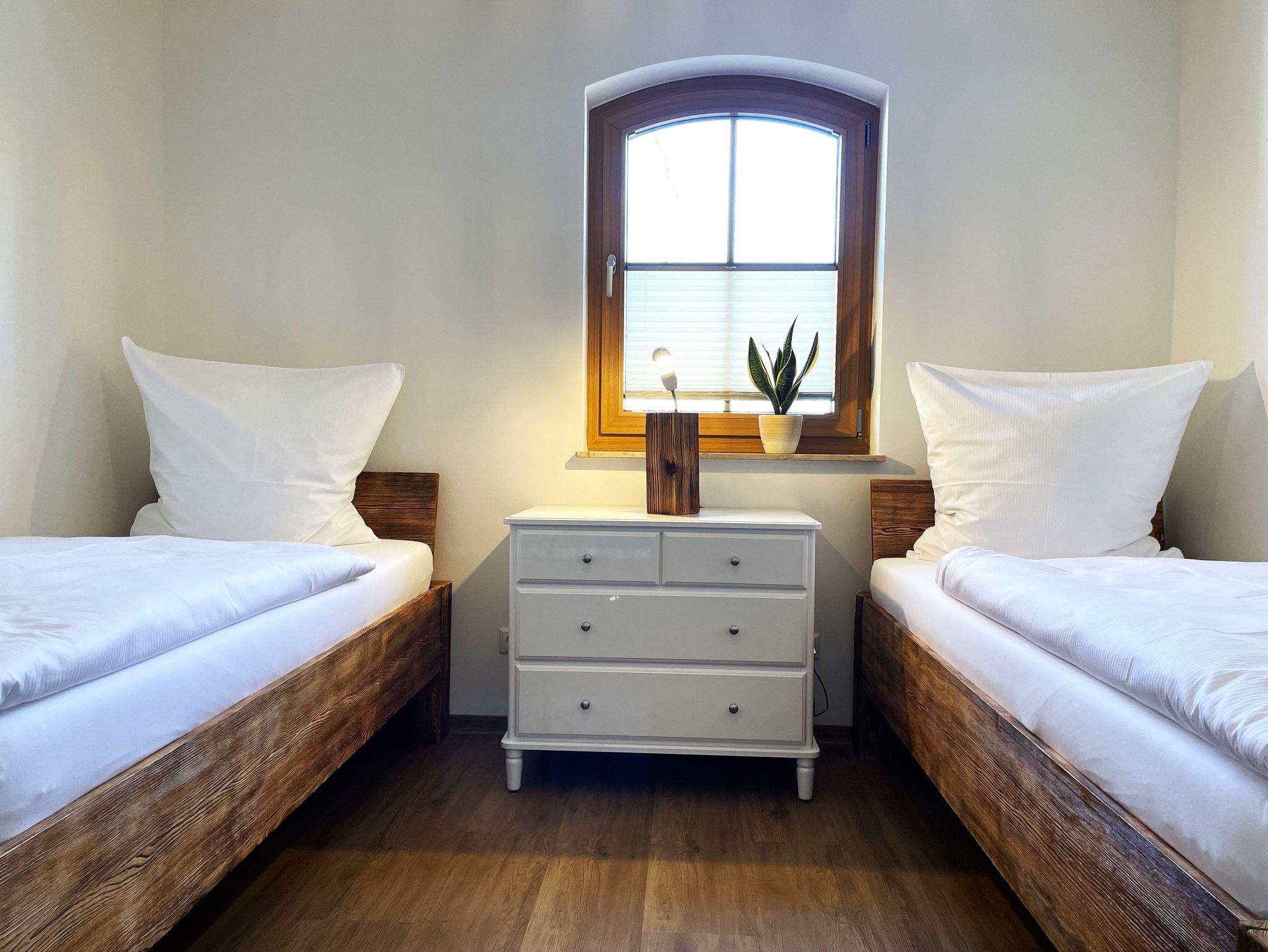 Das Ferienhaus verfügt über 2 Schlafzimmer, die mit handgefertigten Doppelbetten oder getrennten Einzelbetten überzeugen. Die Betten sind mit Bettwäsche bezogen und garantieren einen erholsamen Schlaf.