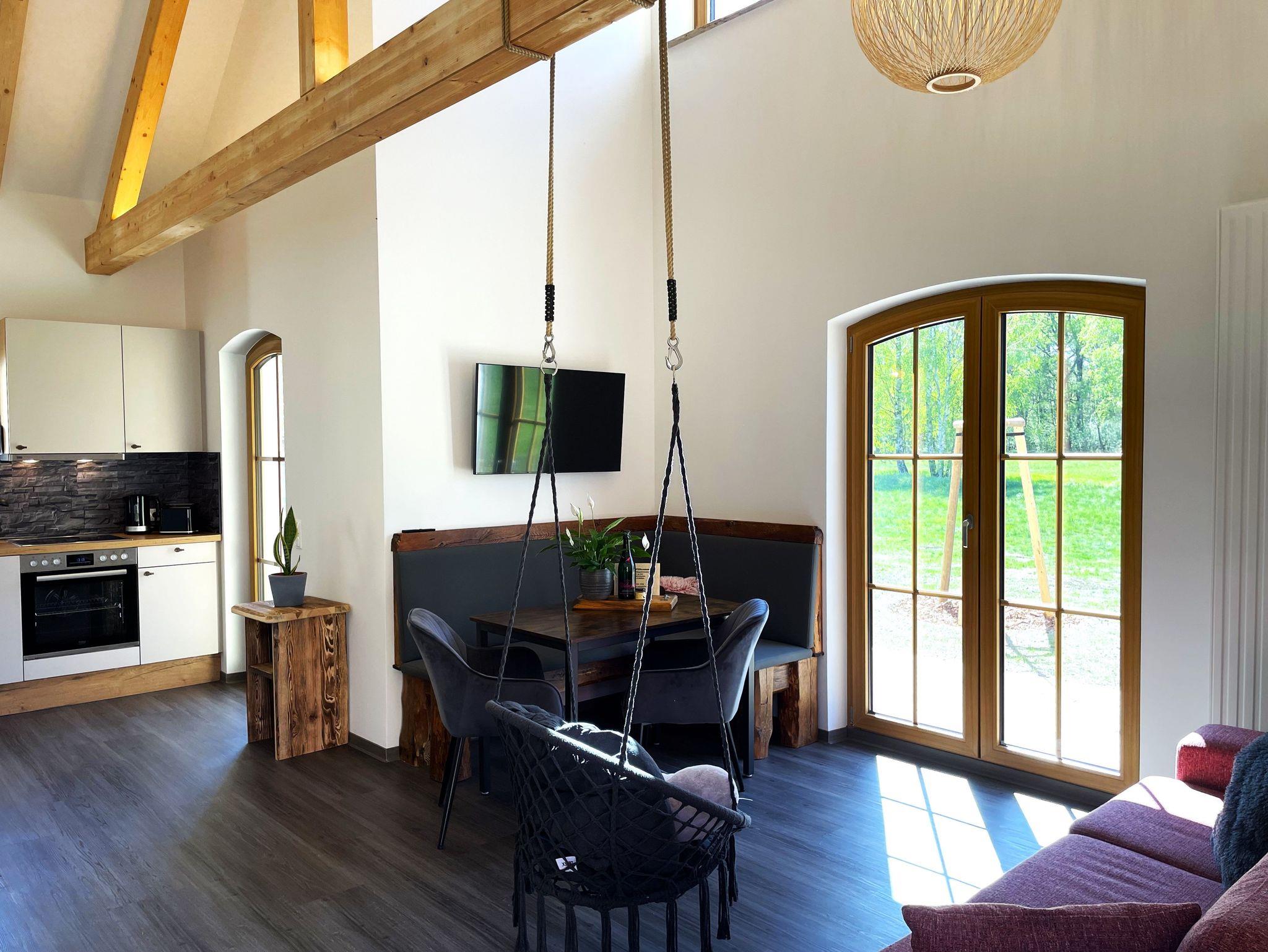 Von der Terrasse aus können Sie direkt ins Freie treten. Die gemütlichen Terrassenmöbel laden zum Verweilen ein ? sei es zum Genießen der frischen Luft, zum Speisen oder einfach zum Relaxen. Die Terrasse ist ein idealer Ort, um die ländliche Ruhe zu erleben und die Schönheit der Natur zu spüren.
