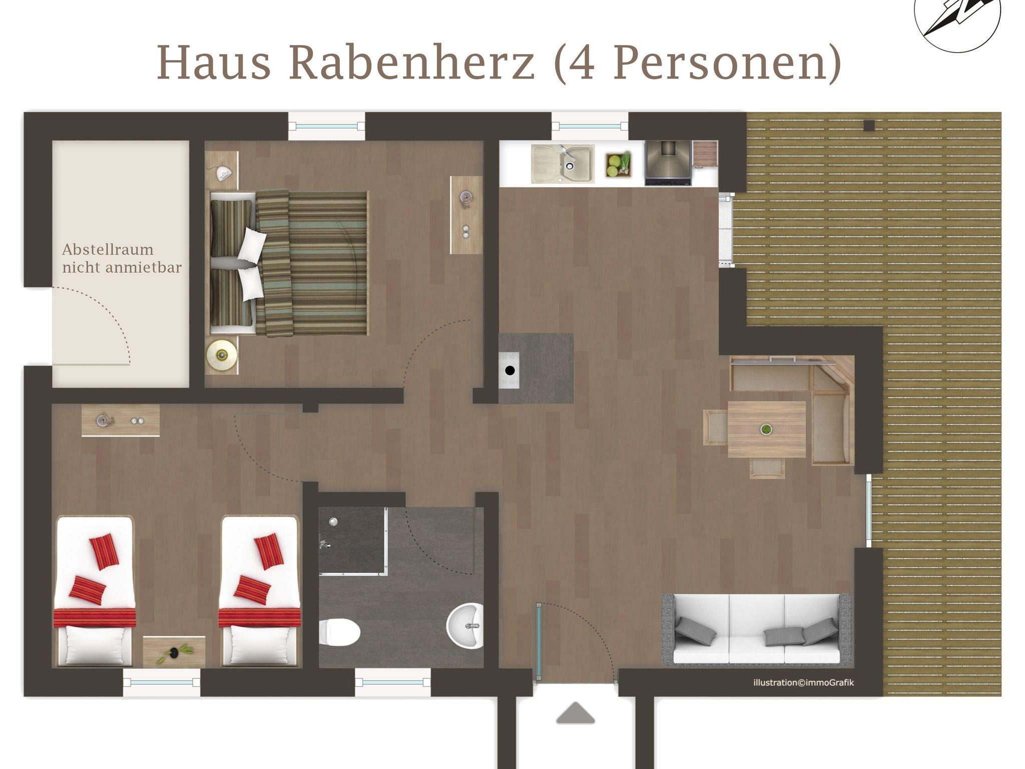 Das Ferienhaus “Rabenherz” ist ein zauberhafter Rückzugsort für alle, die eine erholsame Auszeit vom Alltag suchen. Mit Platz für bis zu vier Personen bietet es eine liebevoll gestaltete Umgebung, die keine Wünsche offenlässt.