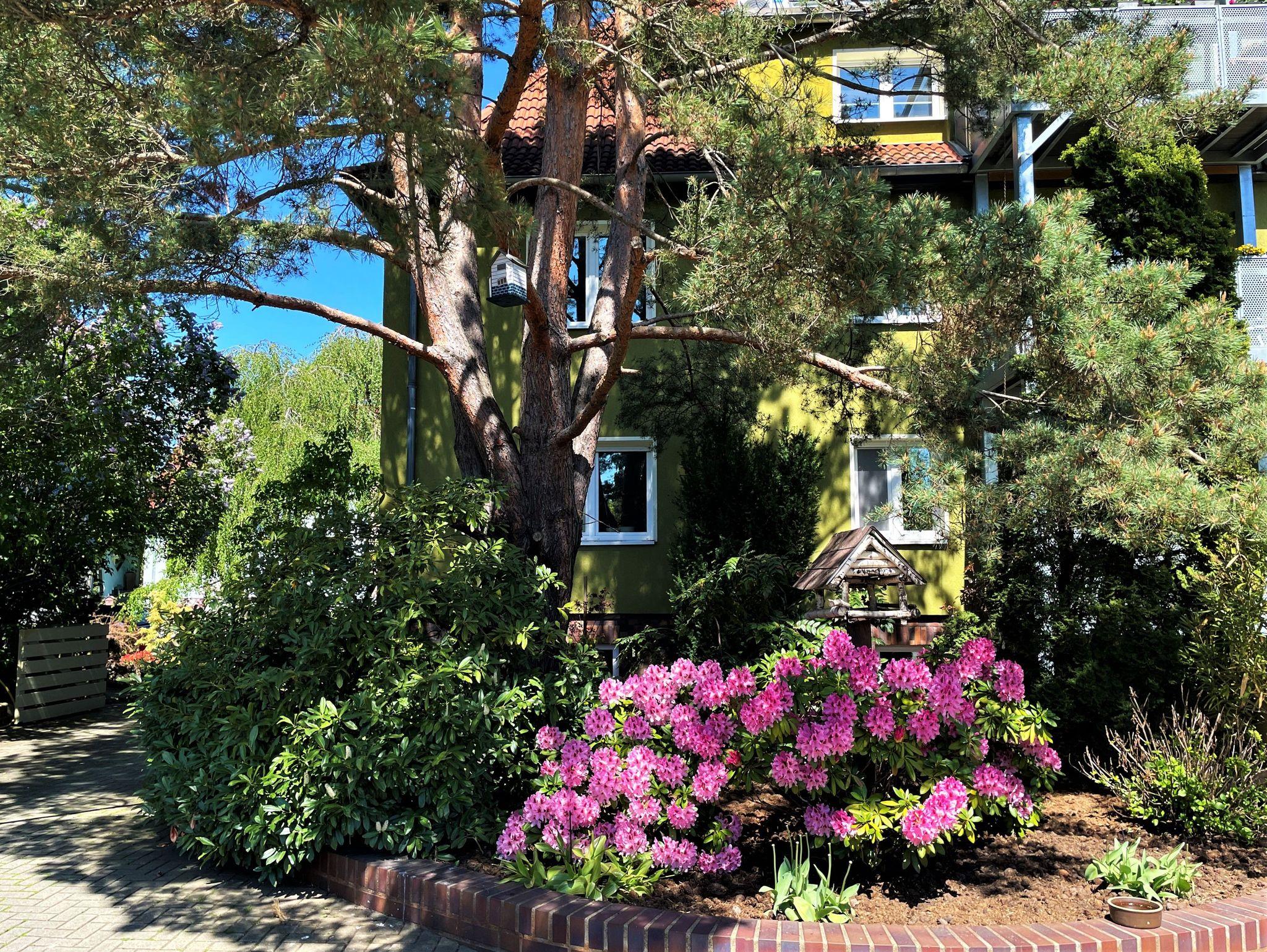 Sie blicken in einen 1000 qm großen, Park ähnlich angelegten Garten, mit einer Teichanlage.