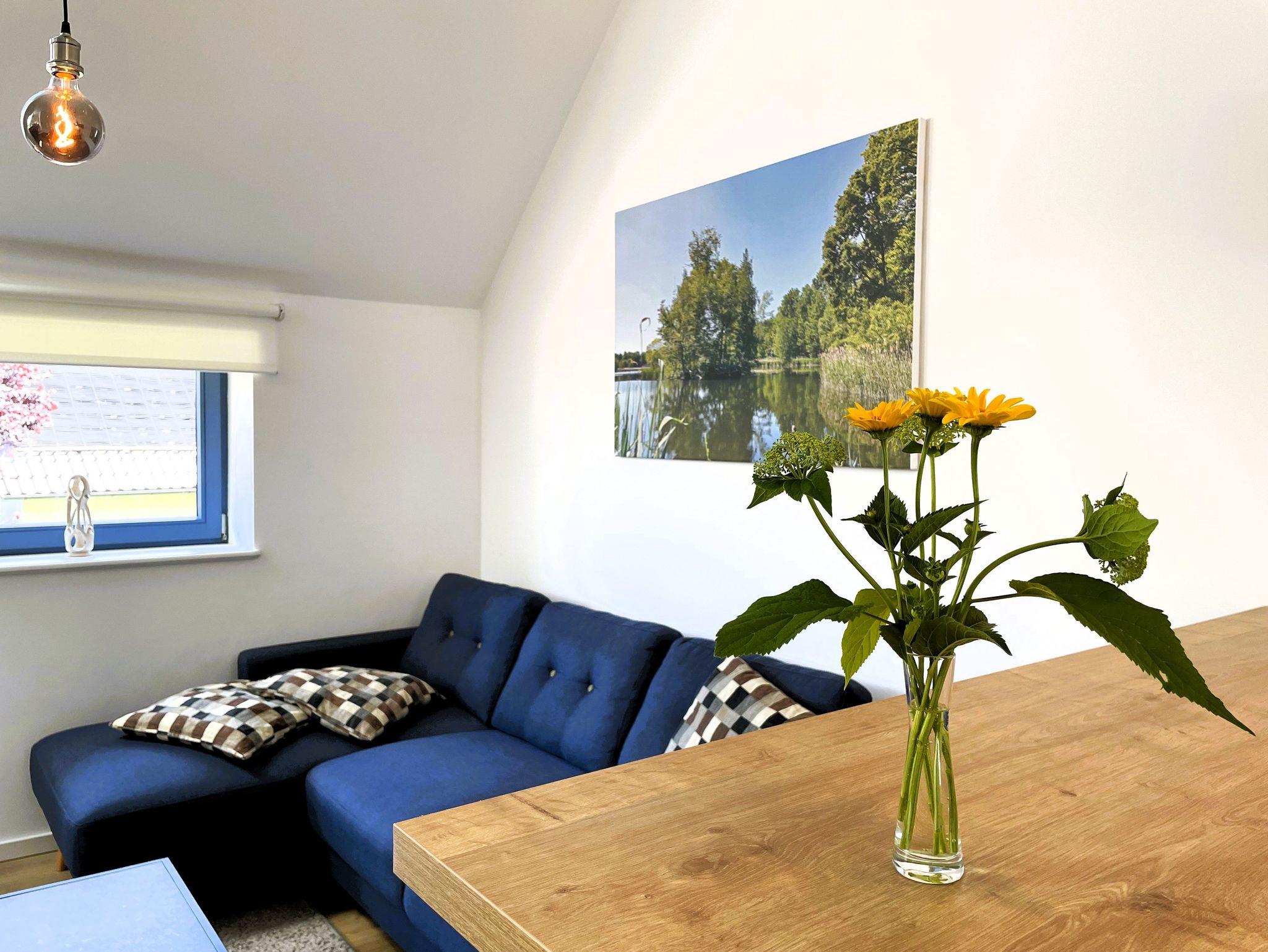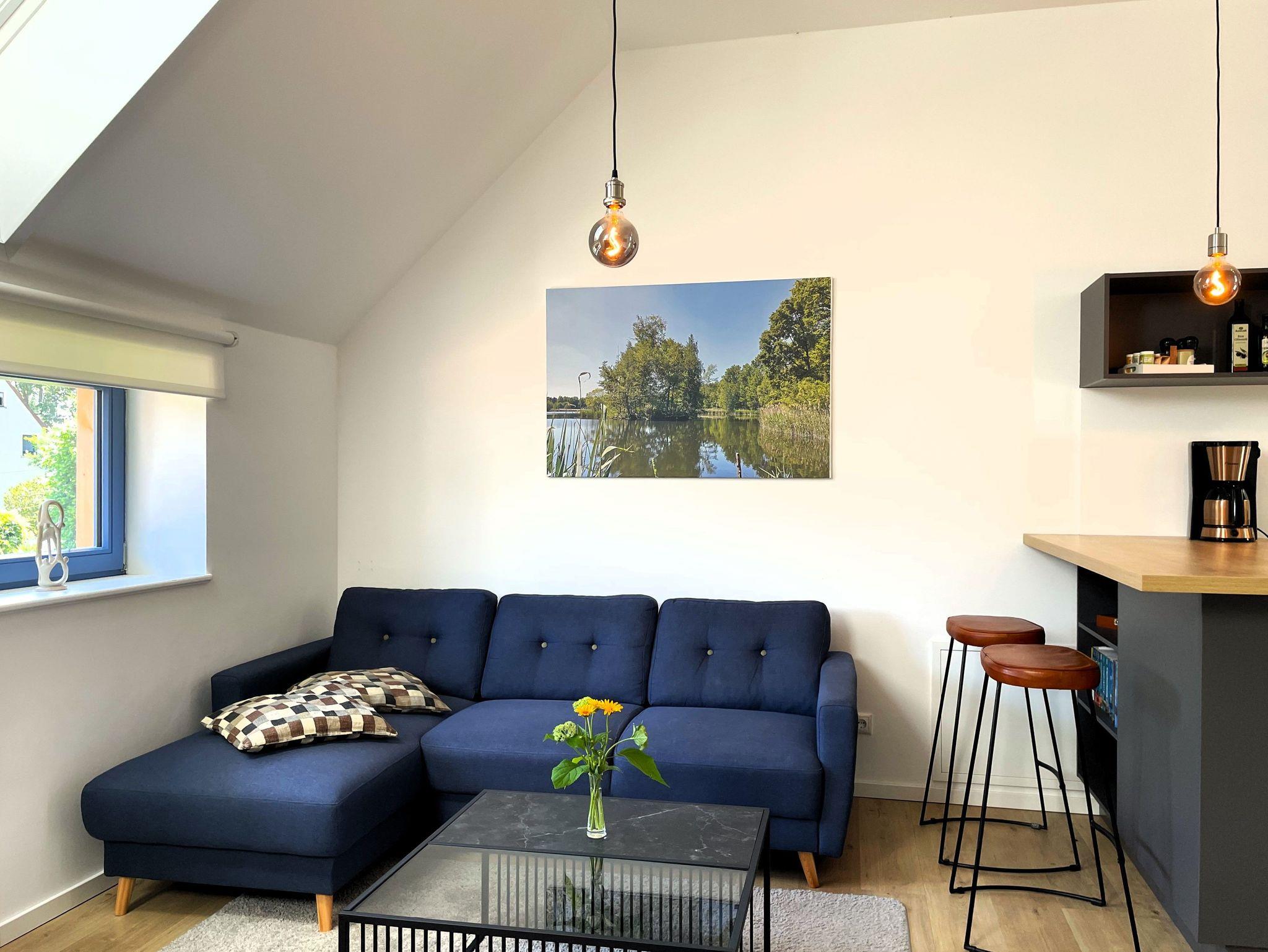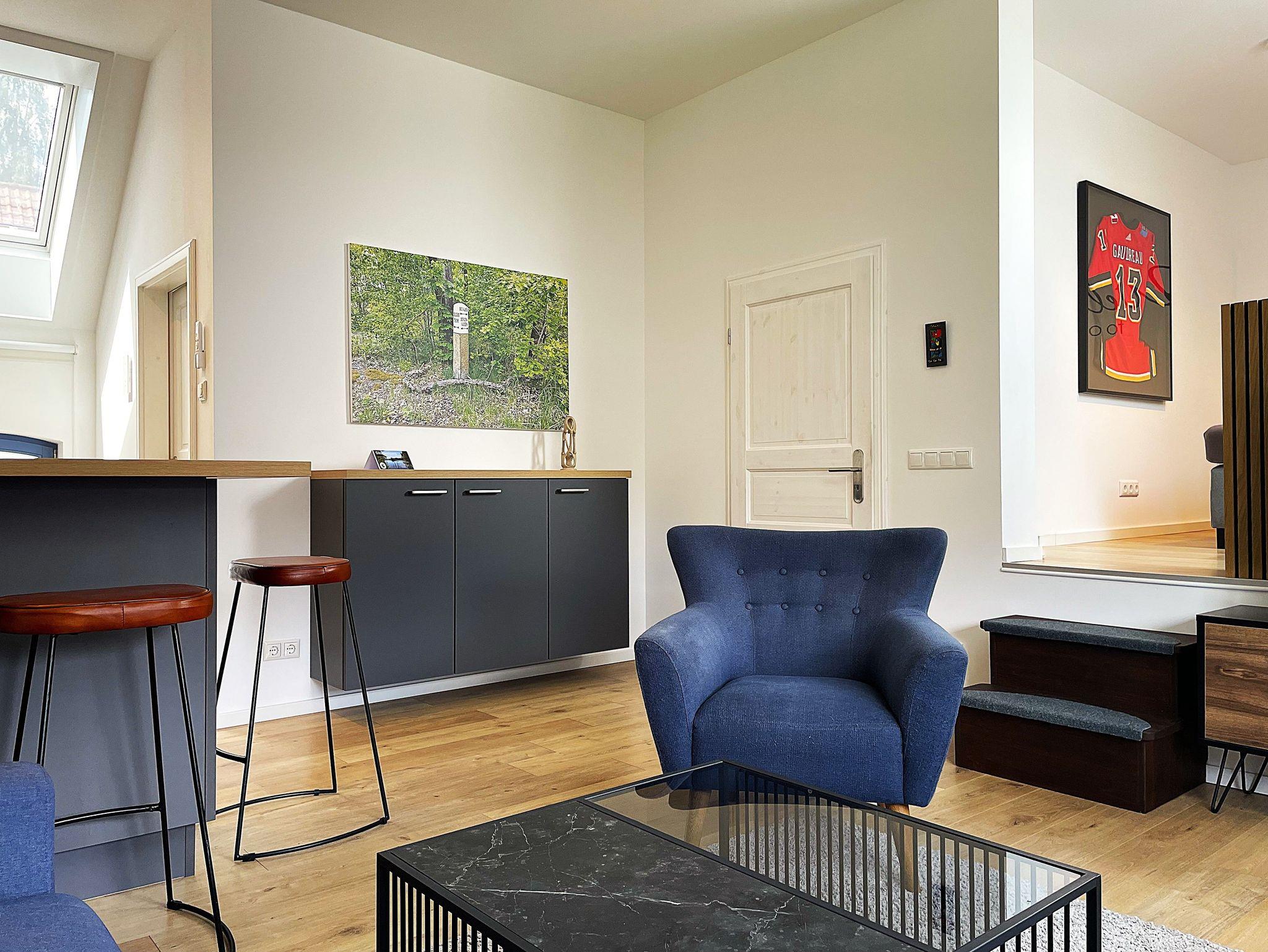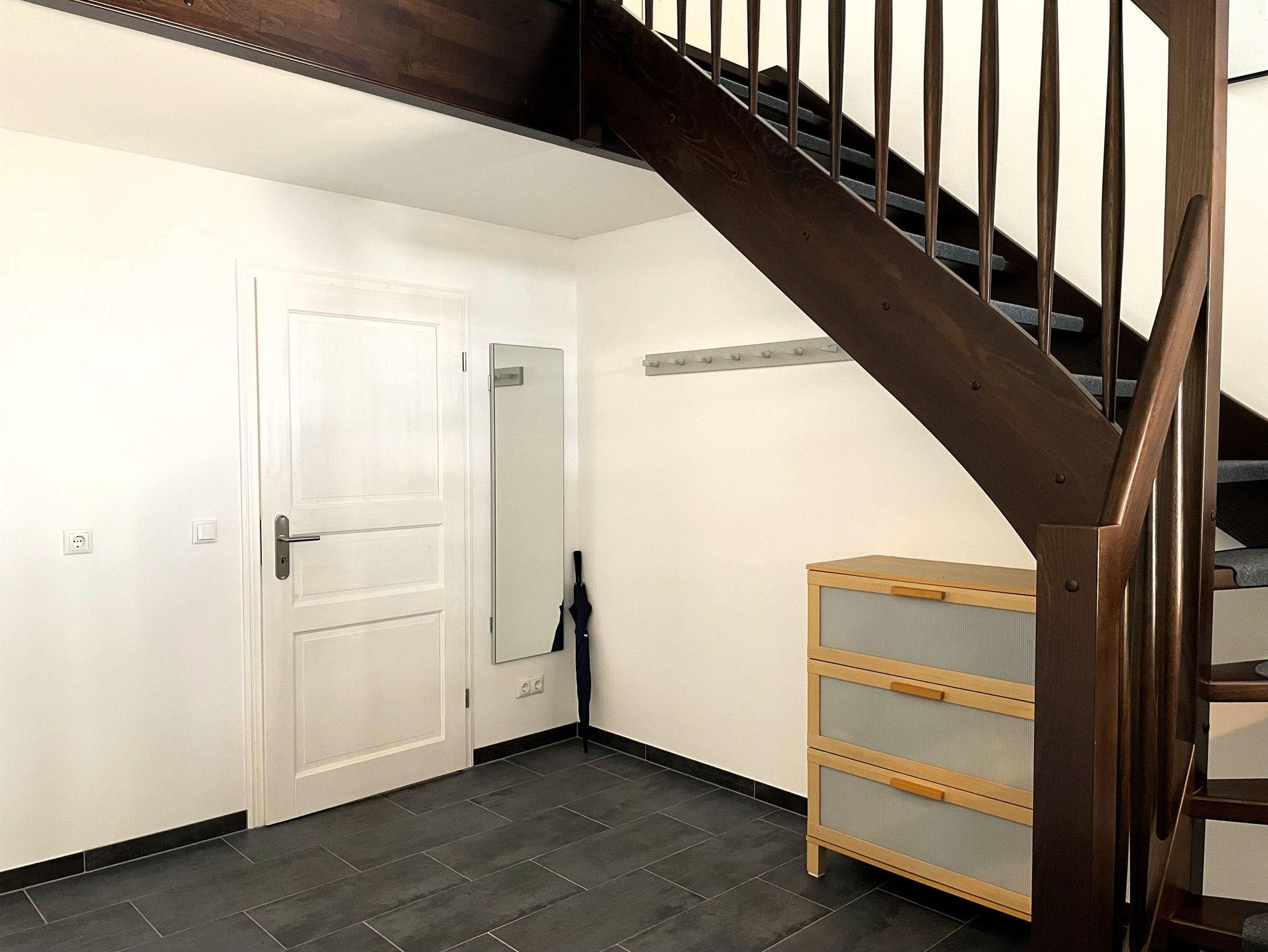 Ein separater Eingang führt direkt zur Unterkunft, wo auch Fahrräder sicher abgestellt und E-Bikes aufgeladen werden können. Die offene, modern gestaltete Küche ist bestens ausgestattet ? mit Kühlschrank, Gefriermöglichkeit, Spülmaschine, Backofen, Mikrowelle, Kaffeemaschine und Wasserkocher. Alle Einrichtungselemente sind zeitgemäß und farblich harmonisch abgestimmt.