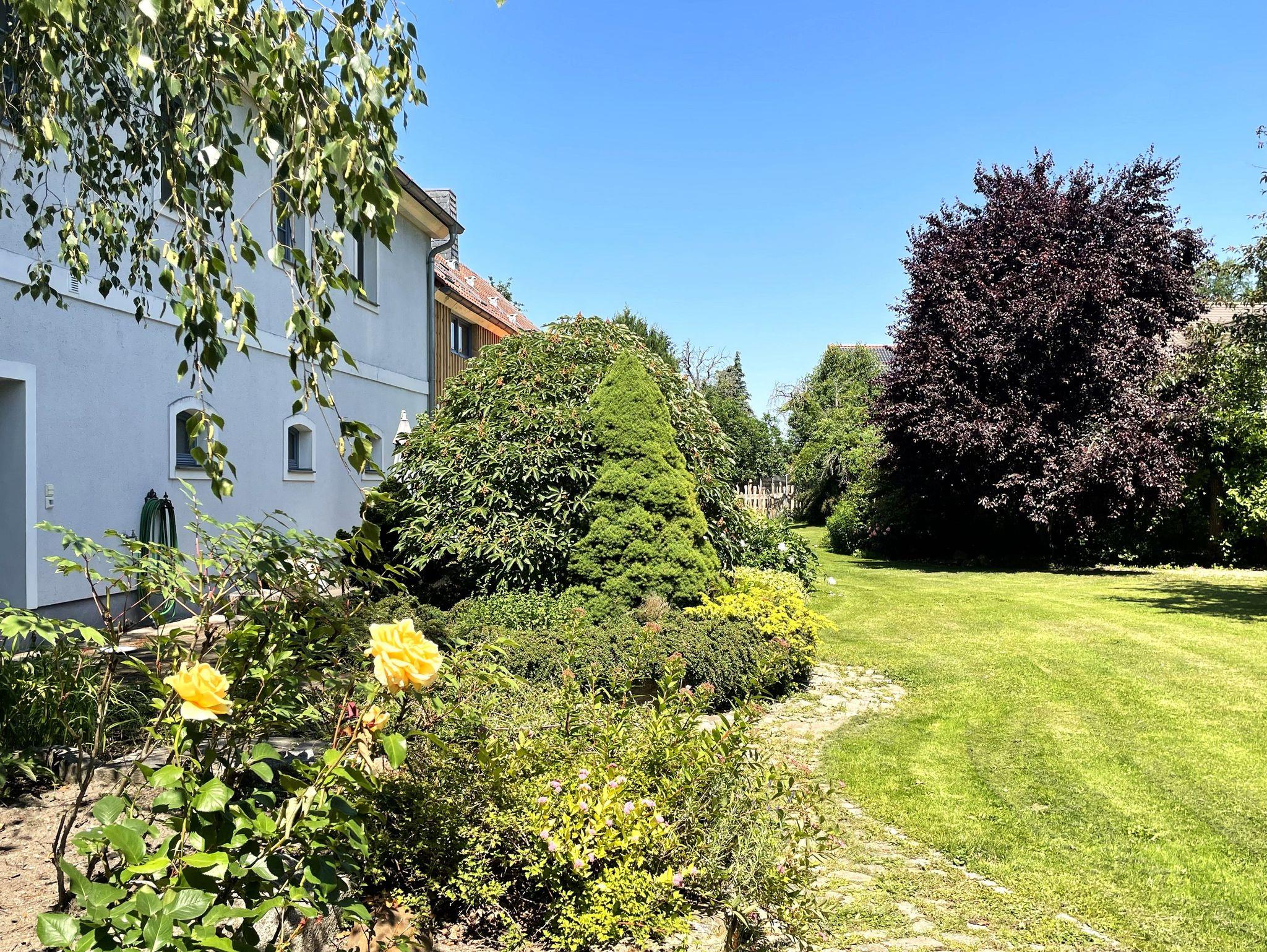 Genießen Sie sonnige Stunden auf der großen, möblierten Terrasse mit Grill, umgeben von einem gepflegten Garten, der zum Verweilen in idyllischer Ruhe einlädt. Ein Smart-TV sorgt für Unterhaltung an ruhigeren Abenden.