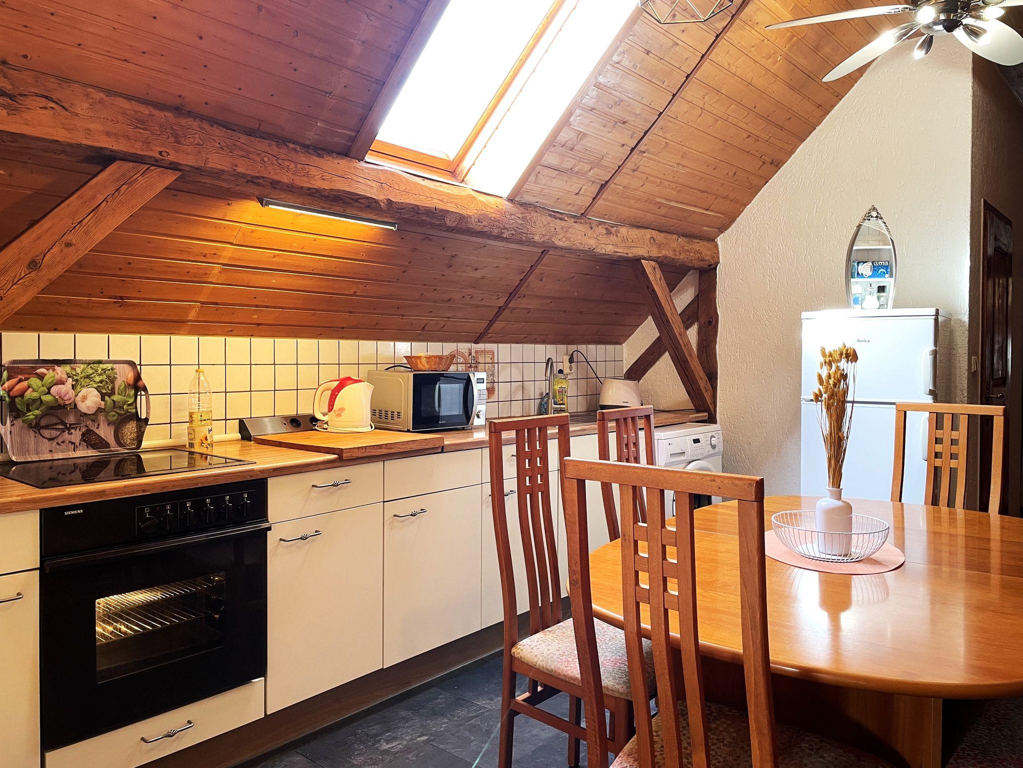 In der offenen Küche können Sie gemeinsam köstliche Mahlzeiten zubereiten und genießen. Die Küche ist bestens ausgestattet mit einem Backofen, einer Mikrowelle, einer Kaffeemaschine, einem Wasserkocher und einem Kühlschrank mit Gefriermöglichkeit.