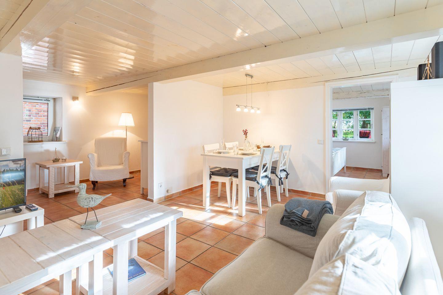 Charmantes Reetdachhaus in Humptrup mit großem Bauerngarten. Auf 75 qm erwarten Sie zwei Schlafzimmer, eine moderne Küche, ein gemütliches Wohnzimmer und eine Terrasse im Grünen. Ideal für bis zu drei Personen. WLAN, Parkplatz und Hund erlaubt. Perfekt für Ruhesuchende, die ländliche Idylle, Nordsee und Ausflüge nach Sylt oder Dänemark genießen möchten.