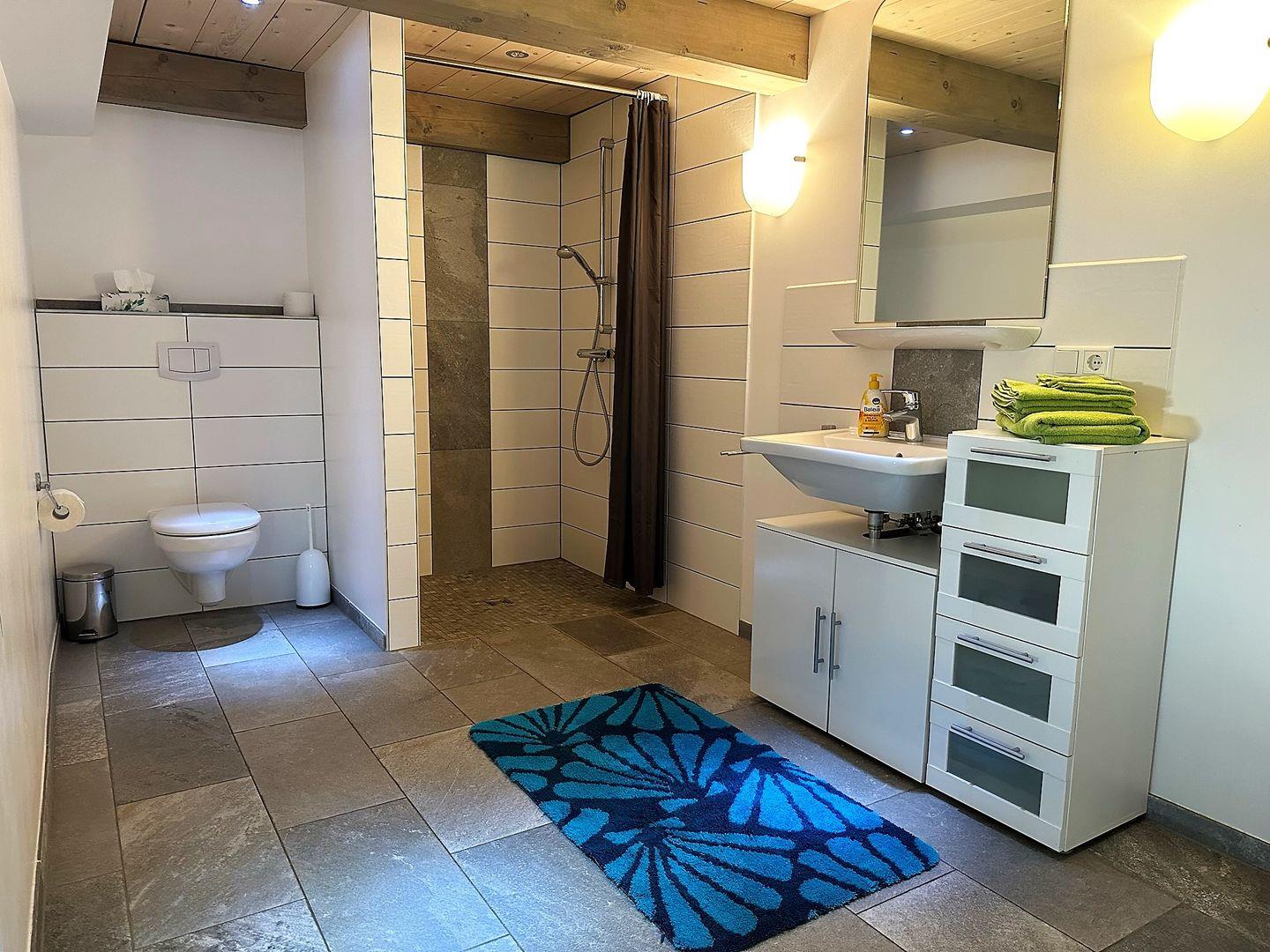 Die Badezimmer sind sowohl mit einer bodengleichen Dusche als auch mit einer Badewanne ausgestattet, sodass Sie nach einem erlebnisreichen Tag vollkommen entspannen können. Für das Wohl der kleinen Gäste gibt es zudem einen Hochstuhl und ein Babybett. Sicherheit wird großgeschrieben mit einem Treppengitter, damit auch die Kleinsten sicher die Treppen nutzen können.