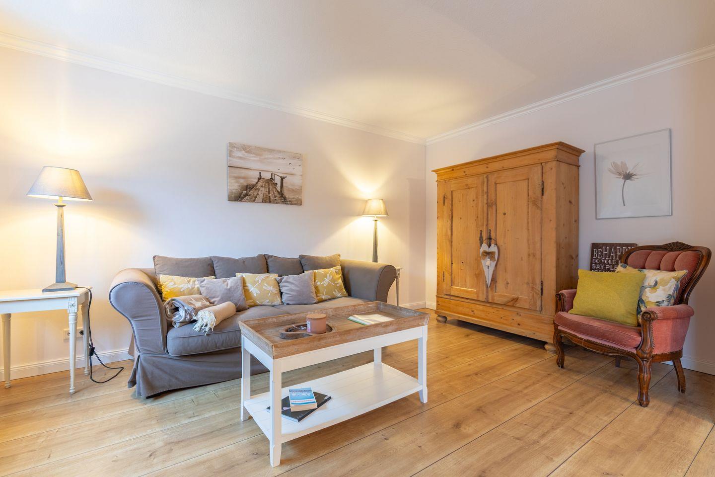 Im Inneren erwarten Sie sechs Räume mit klar gegliederten Wohn- und Essbereichen. Wohnzimmer, Esszimmer und eine separate Sofaecke laden zum Entspannen ein. Zur Unterhaltung stehen Ihnen ein SMART- TV im Wohnzimmer, Radio, CD-Spieler, HiFi-Anlage sowie WLAN zur Verfügung. Bücher und Spiele ergänzen das Angebot. Praktische Ausstattungsdetails wie Garderobe, Schreibtisch, Sessel, Kommode, Wäscheständer, Staubsauger sowie Bügeleisen und -brett sorgen für Komfort im Alltag.