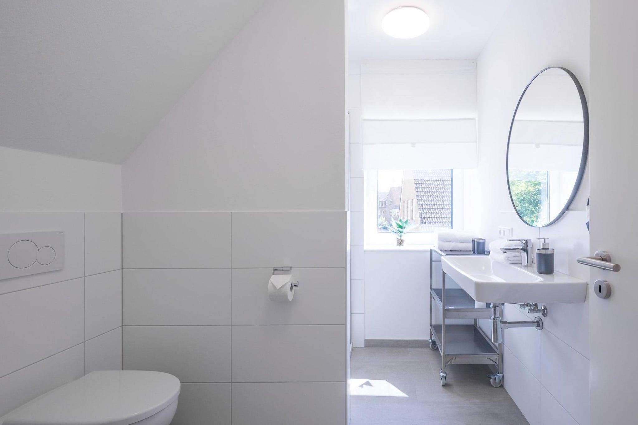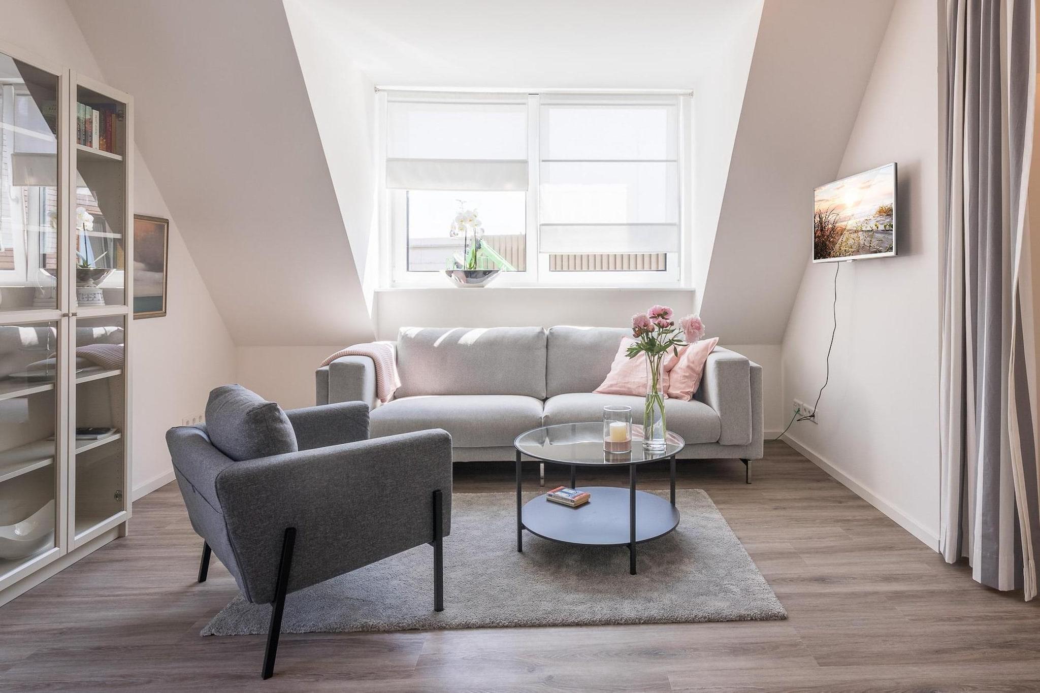 Leiligheten ligger rett overfor slottsparken og kun få minutters gange fra den idylliske havnen, Husum sentrum med sine mange flotte butikker og kjøpesenteret THEO. Veldig gode restauranter og koselige kafeer finner du i sentrum, på Untere Neustadt? og ved havnen. Kinoen (alltid med catering!) ligger innen gangavstand. Og rett foran Nordsjøen / Dockkoog er det en 3-minutters kjøretur og en 20-minutters spasertur (solnedgangene er verdt det!) Husum togstasjon ligger innen lett gangavstand. Med tog kan du nå St. Peter-Ording og Westerland / Sylt på bare en time.