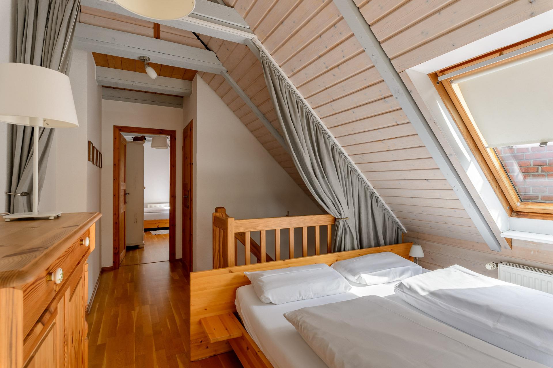 Ankommen, durchatmen, wohlfühlen: Die gemütlich eingerichtete Doppelhaushälfte bietet den idealen Rückzugsort für Paare, Familien oder kleine Freundesgruppen. Denn wenn mehr Platz benötigt wird, kann die zweite Haushälfte "Steuerbord" direkt nebenan einfach mit gebucht werden. Genießen Sie zwei Schlafbereiche - ein offenes Galerieschlafzimmer mit Doppelbett (160x200cm) sowie ein separates Schlafzimmer mit zwei Einzelbetten (je 90x200cm). Die moderne Einbauküche mit Geschirrspüler, SAT-TV im Wohnzimmer und eine eigene Waschmaschine sorgen für entspannten Urlaubskomfort. Draußen erwartet Sie ein kleiner Garten mit Strandkorb und Gartenmöbeln. Ein überdachter Fahrradstellplatz sowie ein Parkplatz direkt am Haus runden das Angebot ab. Bettwäsche, Handtücher, Endreinigung und viele nützliche Kleinigkeiten für Küche und Bad sind bereits im Preis enthalten. Auf Wunsch können Sie Ihr Frühstück ganz bequem im benachbarten Nordsee-Hotel Hinrichsen genießen (nur durch den Hotelparkplatz getrennt). Nach nur ca. 300 Metern zu Fuß erreichen Sie den charmanten Husumer Innenstadtbereich mit Cafés, kleinen Boutiquen, dem malerischen Hafen und dem Husumer Schloss.