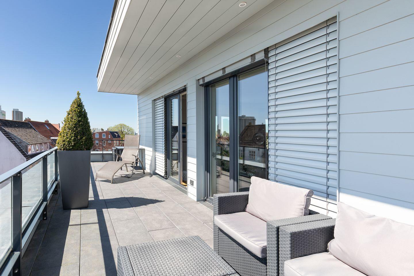 Auf der großen Dachterrasse können Sie den Tag gemütlich auf komfortablen Gartenmöbeln ausklingen lassen und dabei den schönen Sonnenuntergang über der Nordsee beobachten.