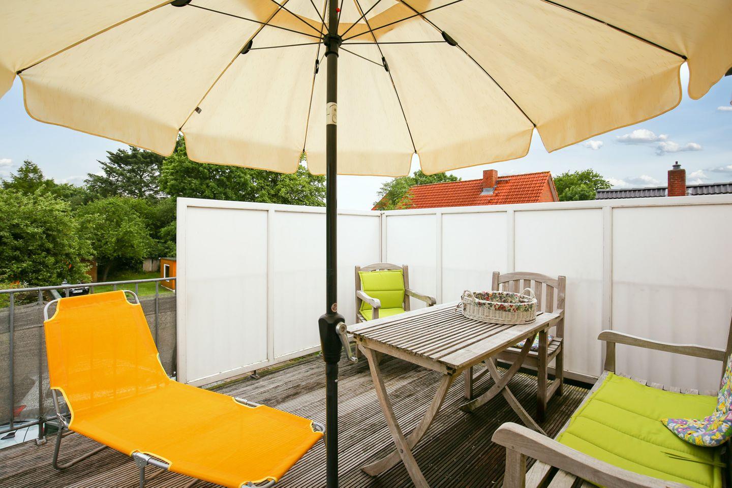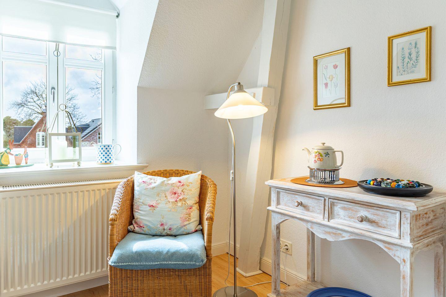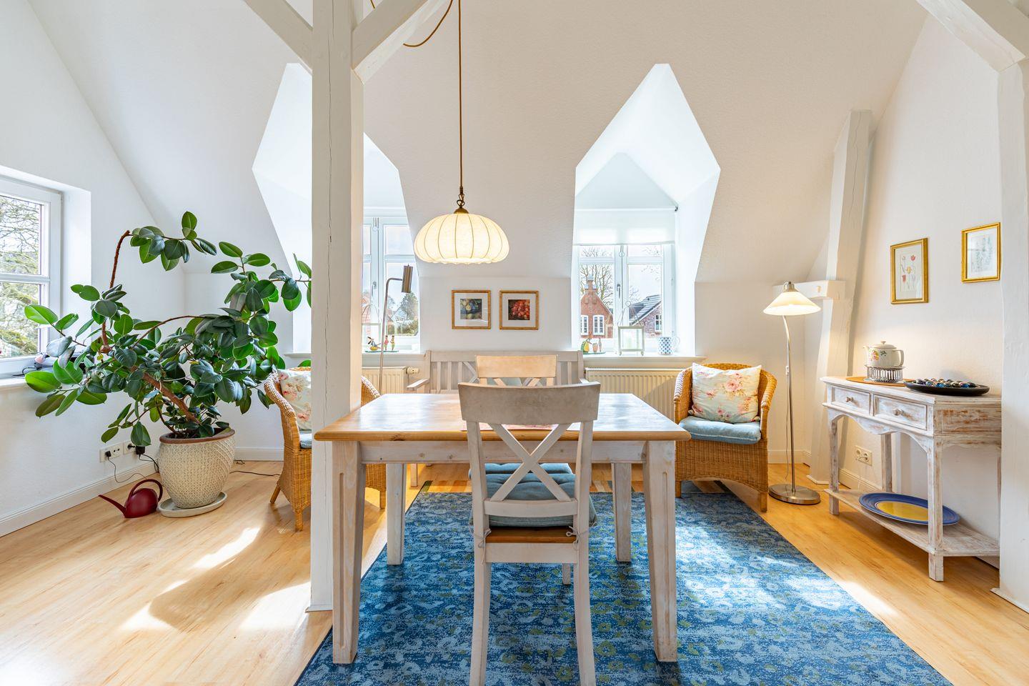 Unsere Ferienwohnung Woldsen liegt im Obergeschoss in einem ruhigen Wohnviertel, fußläufig zur Husumer Innenstadt und bietet Platz für bis zu zwei Personen.