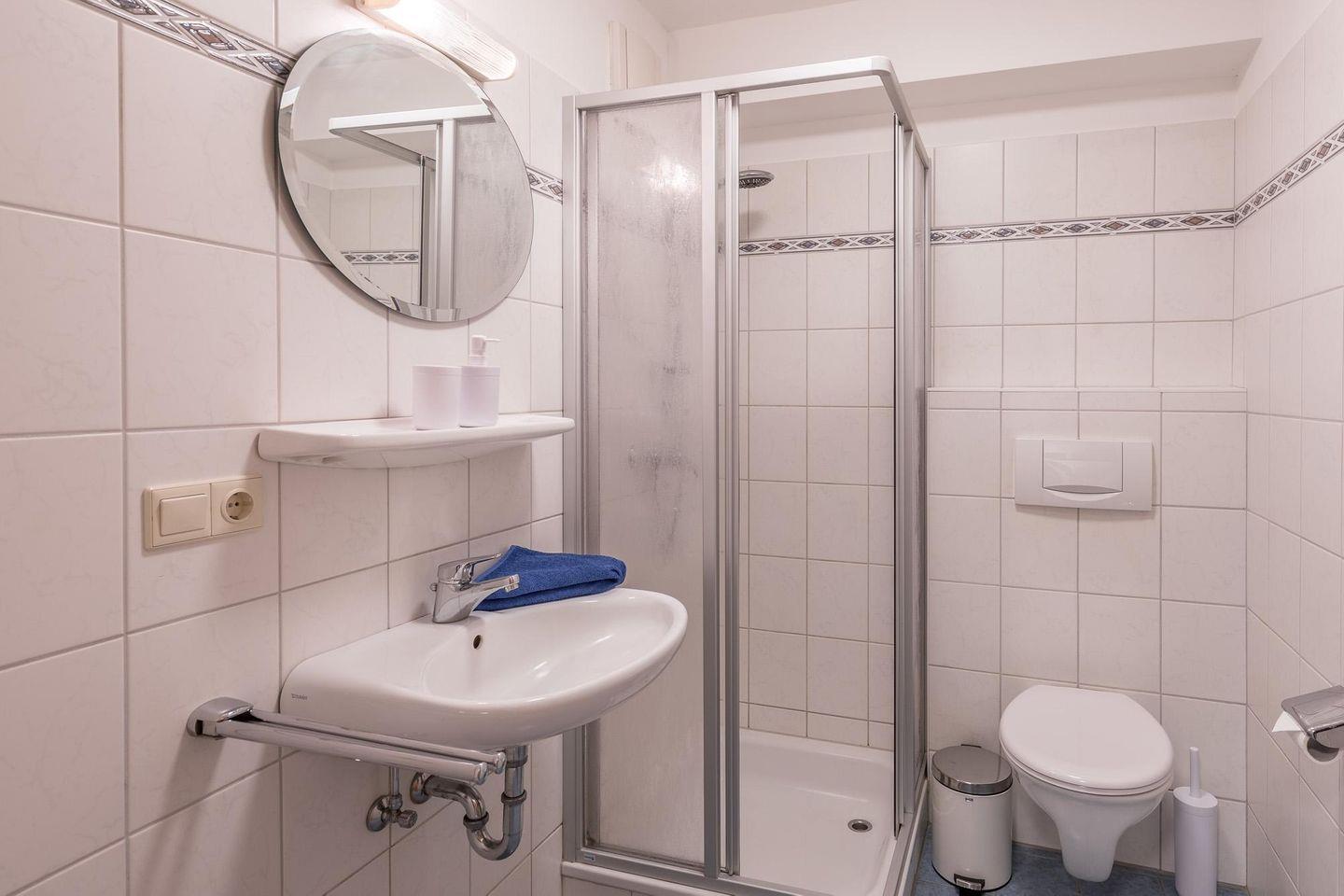 Die Wohnung mit ihren ca. 50 qm verfügt über ein separates Schlafzimmer mit Doppelbett (180 x 200), ein Wohnzimmer mit TV und ein modernes Duschbad. Die offene Küche hält einen 4-Platten-Herd, einen Backofen, einen Kühlschrank mit Gefrierfach, eine Kaffeemaschine und einen Wasserkocher für Sie bereit.