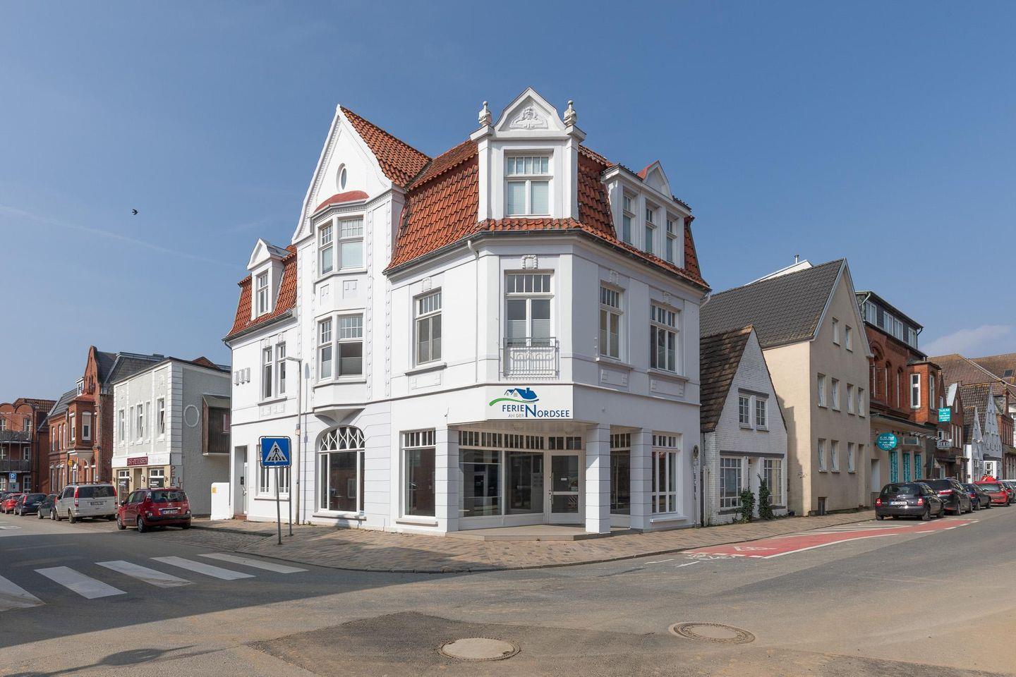 Am Ende einer Fußgängerzone, gegenüber von der Einfahrt zu einem Husumer Einkaufszentrum befinden sich im 1. OG einer Stadtvilla eine 100 qm große Wohnung mit drei Doppelzimmern. Die nächsten Restaurants und Cafés und auch der Hafen sind nur ca. 200 m entfernt. Auch die Husumer Innenstadt und der Bahnhof sind bequem fußläufig zu erreichen.