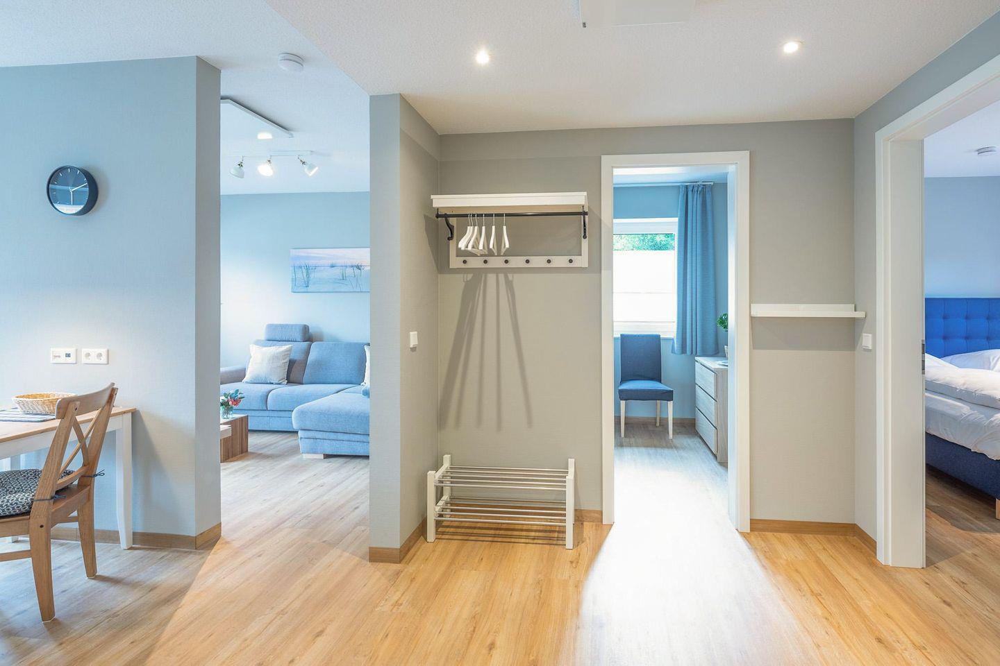 Unsere ebenerdige Ferienwohnung für den gehobenen Anspruch bietet Ihnen innovativ klar gestaltete Räume und komfortables Wohnen. Tauchen Sie in Ihren Urlaub ein.