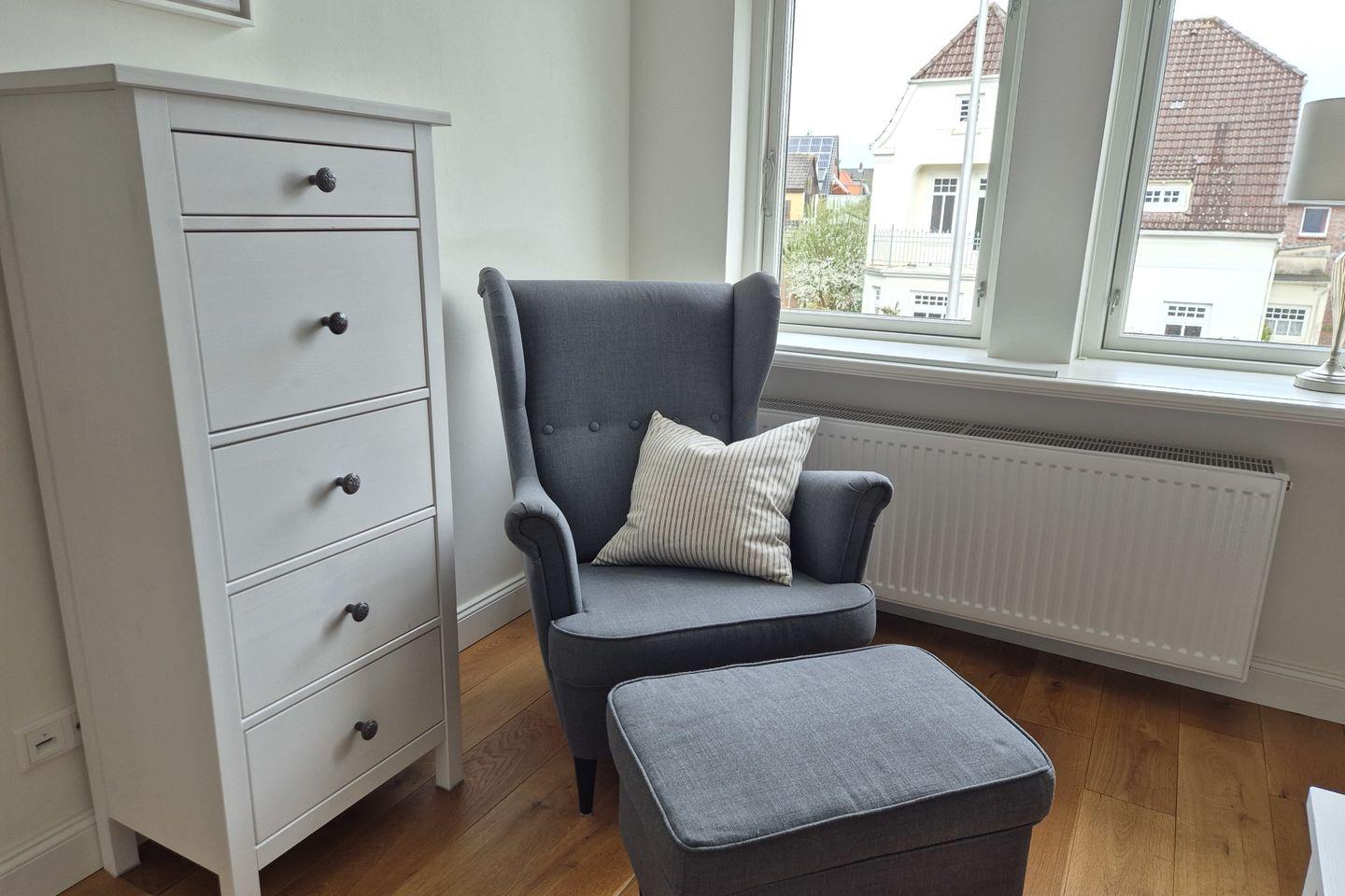 Willkommen in der Villa 18, Husum! 4-Personen-Ferienwohnung, 1. OG, zentral & ruhig. 80 qm, Wohnzimmer, moderne Küche, 2 Schlafzimmer, Bad mit Wanne/Waschmaschine. Kostenloses WLAN, Parken an der Straße, Balkon. Elektroauto-Lademöglichkeit. Inklusive Bettwäsche & Handtücher, zusätzliche Pakete buchbar. Entspannen Sie hier!