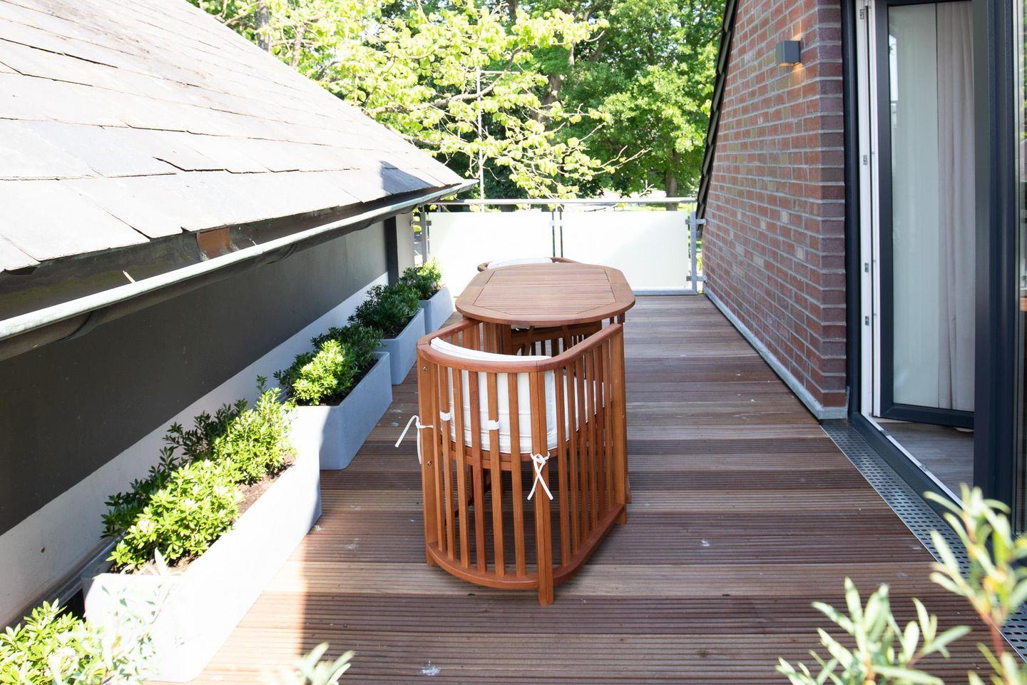 Auf dem geschützten Balkon können Sie relaxen und den Blick auf den Schlosspark und das Schloss genießen.
