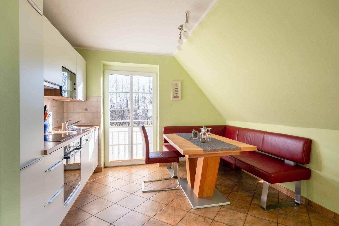 Die Ferienwohnung liegt im 1. Obergeschoss des Apartmenthauses "Maashof" und eignet sich besonders für Familien.