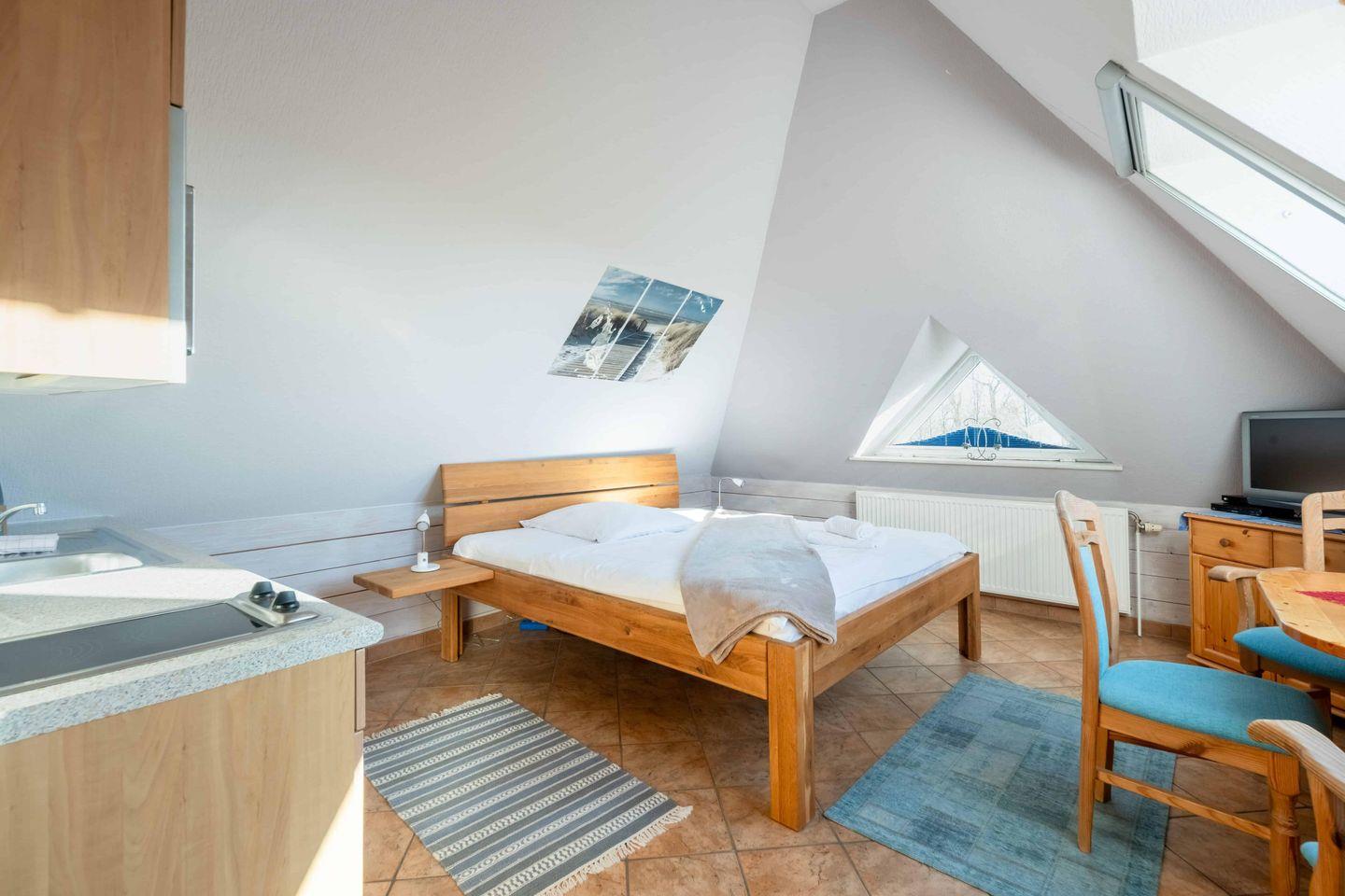 Die Studiowohnung liegt im 2. Obergeschoss des Apartmenthauses "Maashof" und eignet sich besonders für Einzelreisende oder Paare.