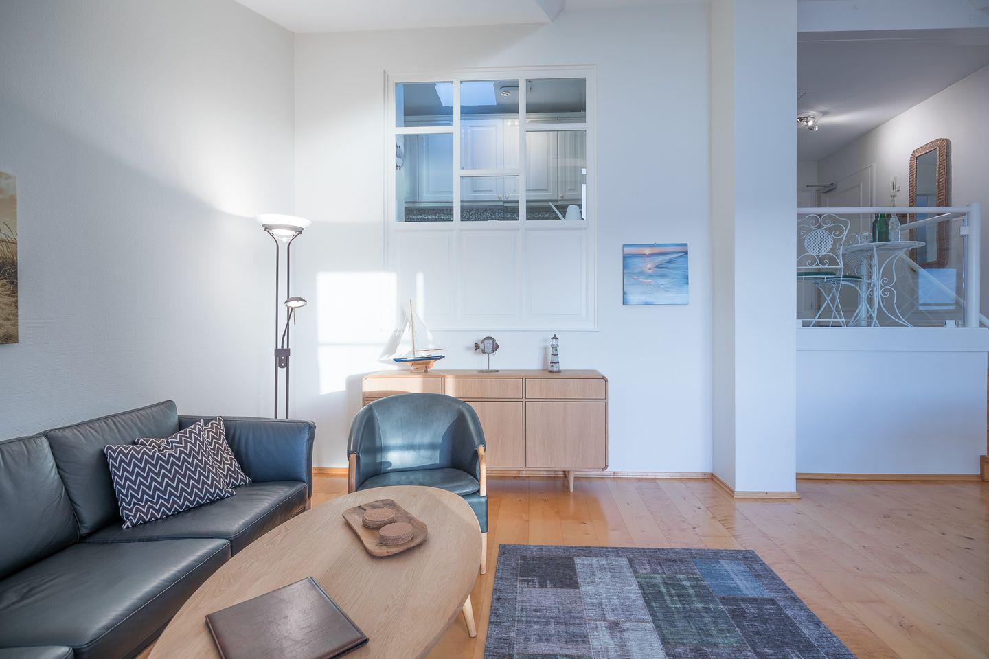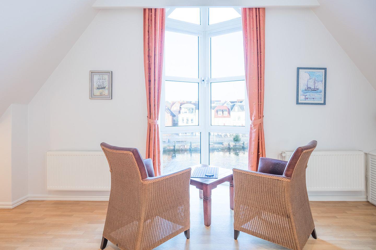 Ein echtes Highlight ist der Blick vom Wohnzimmer auf den Husumer Hafen.