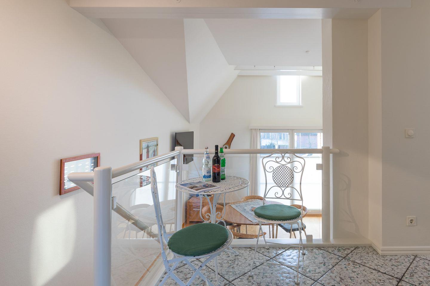 Genießen Sie morgens auf dem Balkon eine Tasse Kaffee beim Sonnenaufgang oder abends ein Glas Wein in der frischen Nordseeluft – pure Erholung garantiert! Die Gartenmöbel laden zum Verweilen ein.
