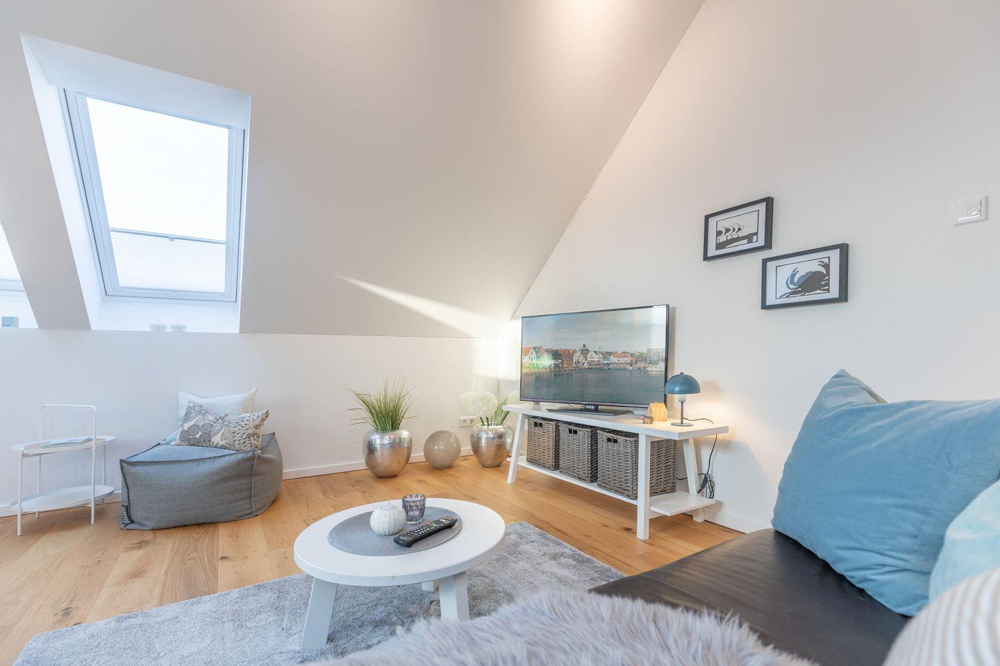 Die gemütliche Sitzecke lädt mit einem großen Flachbild-Smart-TV zum Verweilen ein.