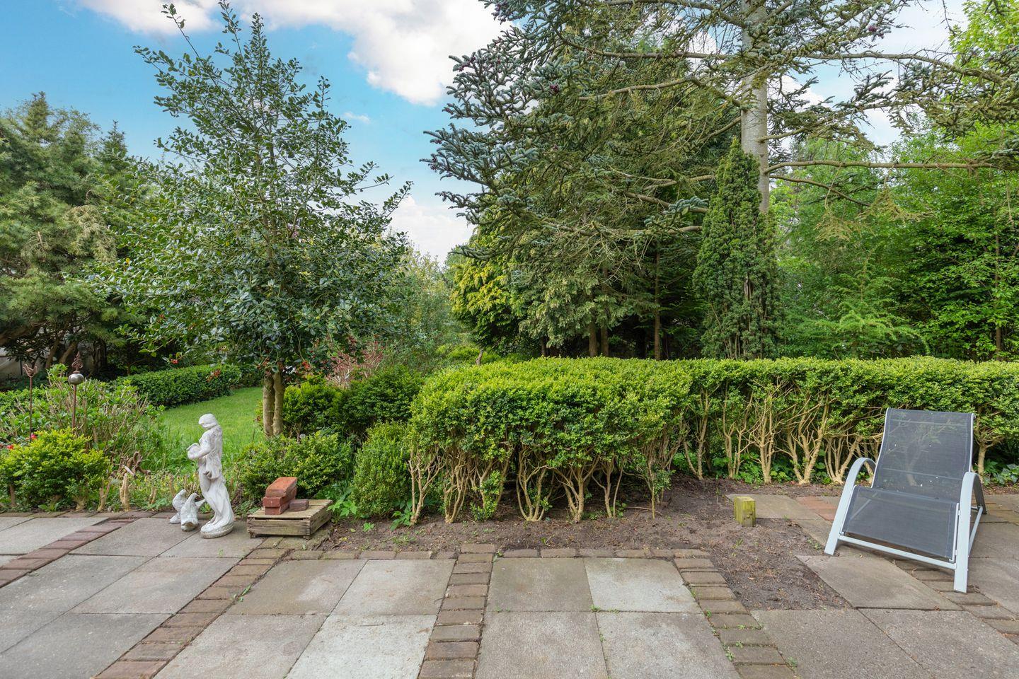 Auf der schönen Gemeinschaftsterrasse können Sie den Tag vor dem wunderschön bewachsenen Garten ausklingen lassen. Auf der Terrasse gibt es zudem Liegestühle und eine Sitzbank. Bitte haben Sie Verständnis dafür, dass nur der vordere Bereich der Terrasse zur Wohnung gehört.