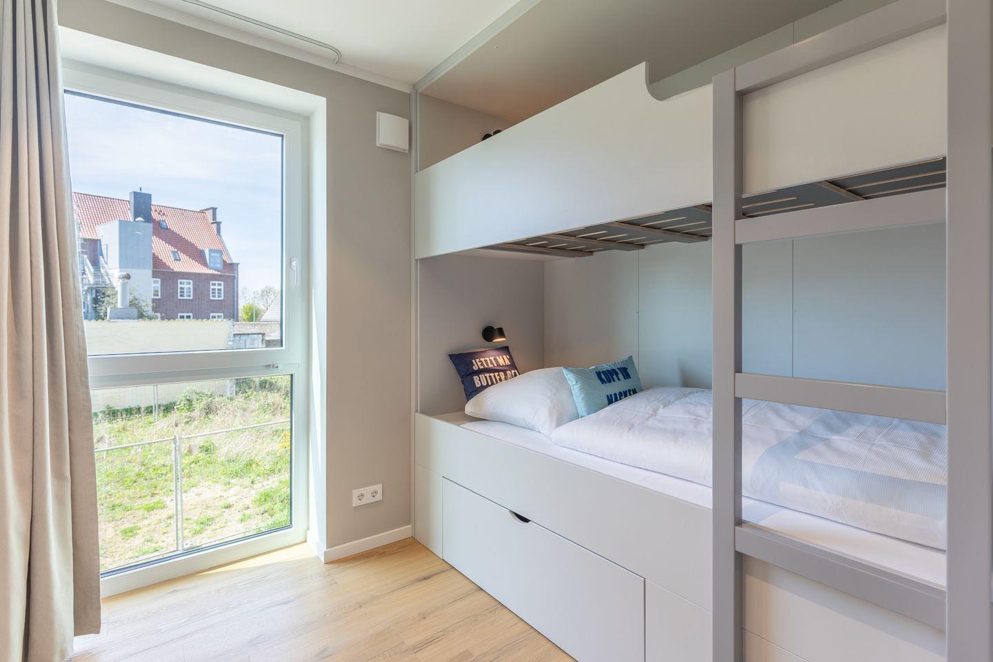 Das Superior-Apartment Amtsstube 05 liegt zentral in der Husumer Altstadt, direkt am Hafen, und bietet barrierearmen Komfort für zwei Erwachsene und zwei Kinder. Aufgeteilt in einen Wohnbereich mit offener Küche, ein Schlafzimmer mit Doppelbett und ein Kinderzimmer mit Etagenbett, ist das Apartment ideal für Familien. Badezimmer mit ebenerdiger Dusche, Fußbodenheizung, WLAN inklusive. Frühstück im benachbarten Hotel zubuchbar. Bettwäsche und Handtücher sind im Preis enthalten.
