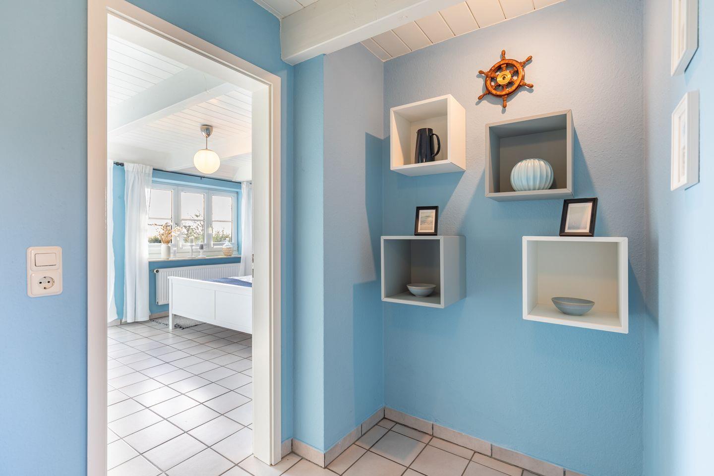 Die Stadt Husum, bekannt als die „Graue Stadt am Meer“, liegt rund 4 Kilometer entfernt und bietet zahlreiche weitere Einkaufsmöglichkeiten, Restaurants und Sehenswürdigkeiten. Der Fährhafen auf Nordstrand ist in etwa 20 Kilometern erreichbar und eignet sich ideal für abwechslungsreiche Tagesausflüge zu den Nordseeinseln.