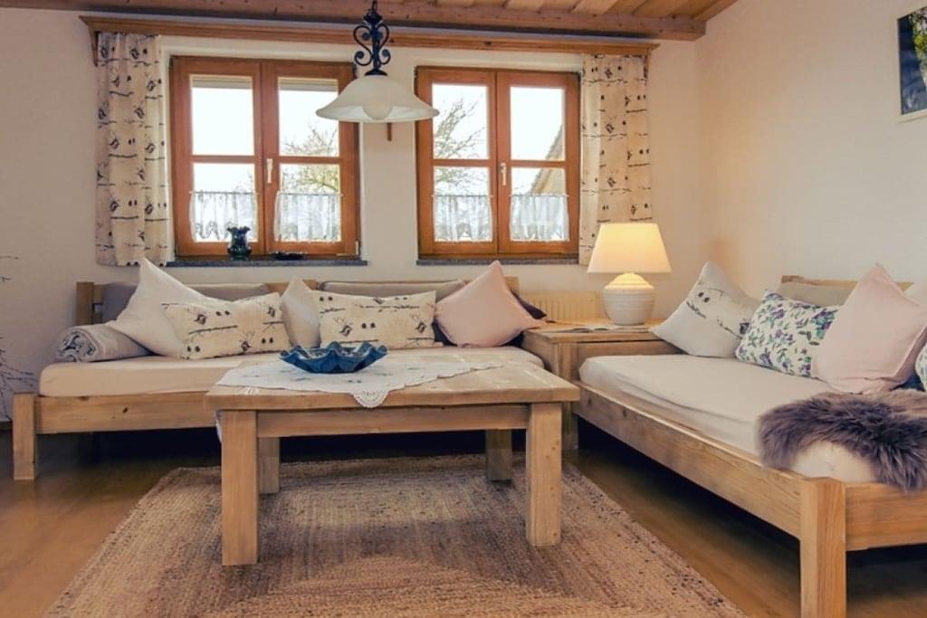 Unsere Ferienwohnung hat eine Größe von 110 m² Tittling/Fürsteneck und verfügt über eine gut ausgestattete Küche mit Spülmaschine, Mikrowelle, usw. Die Ferienwohnung "Tittling-Fürsteneck" befindet sich im Obergeschoss und bietet zwei große Schlafzimmer , ein Badezimmer mit Wanne, Dusche und WC; ein zweites Bad mit Dusche und WC, eine gut ausgestattete Küche, ein Esszimmer für 6 Pers. Wohnzimmer und einen großen Balkon.Zusätzliche Kinderbetten sind möglich. Grillplatz und Gartenhaus. Viele Tiere am Hof. Spielmöglichkeiten für Kinder, Kicker, Tischtennis, Sandkasten, Schaukel, großes Trampolin etc.