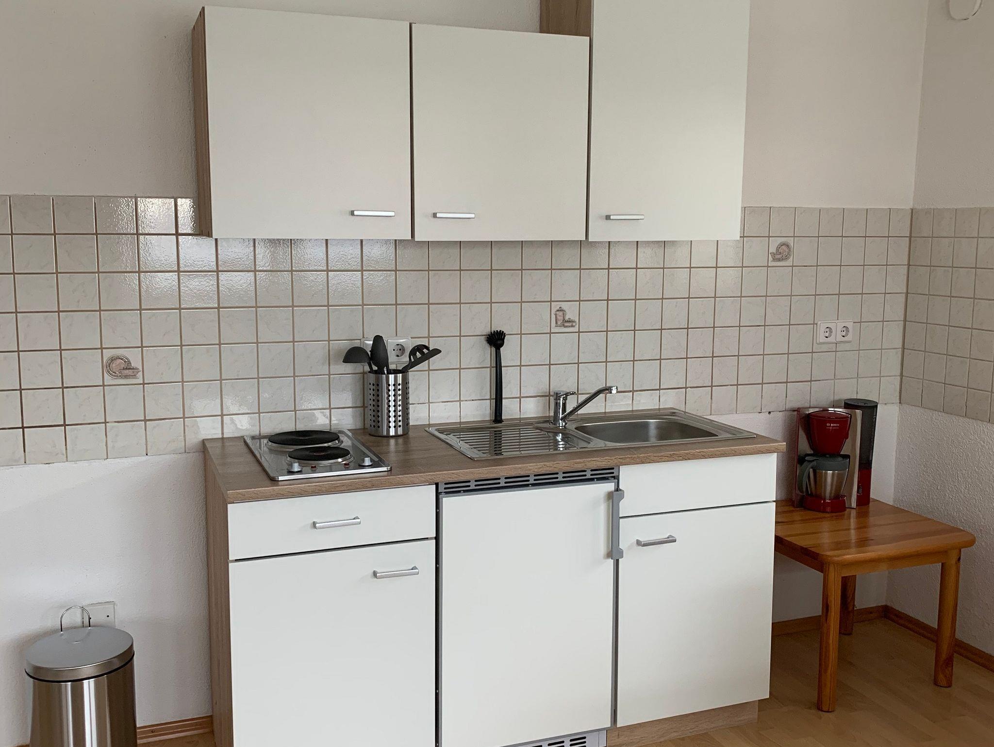 Die Wohnung verfügt über ein Schlafzimmer, ein Wohn-/Schlafzimmer mit Küchenzeile und ein Bad. Das Doppelbett im Schlafzimmer hat eine Breite von 1,40m, ebenso wie das Schlafsofa im Wohnbereich.