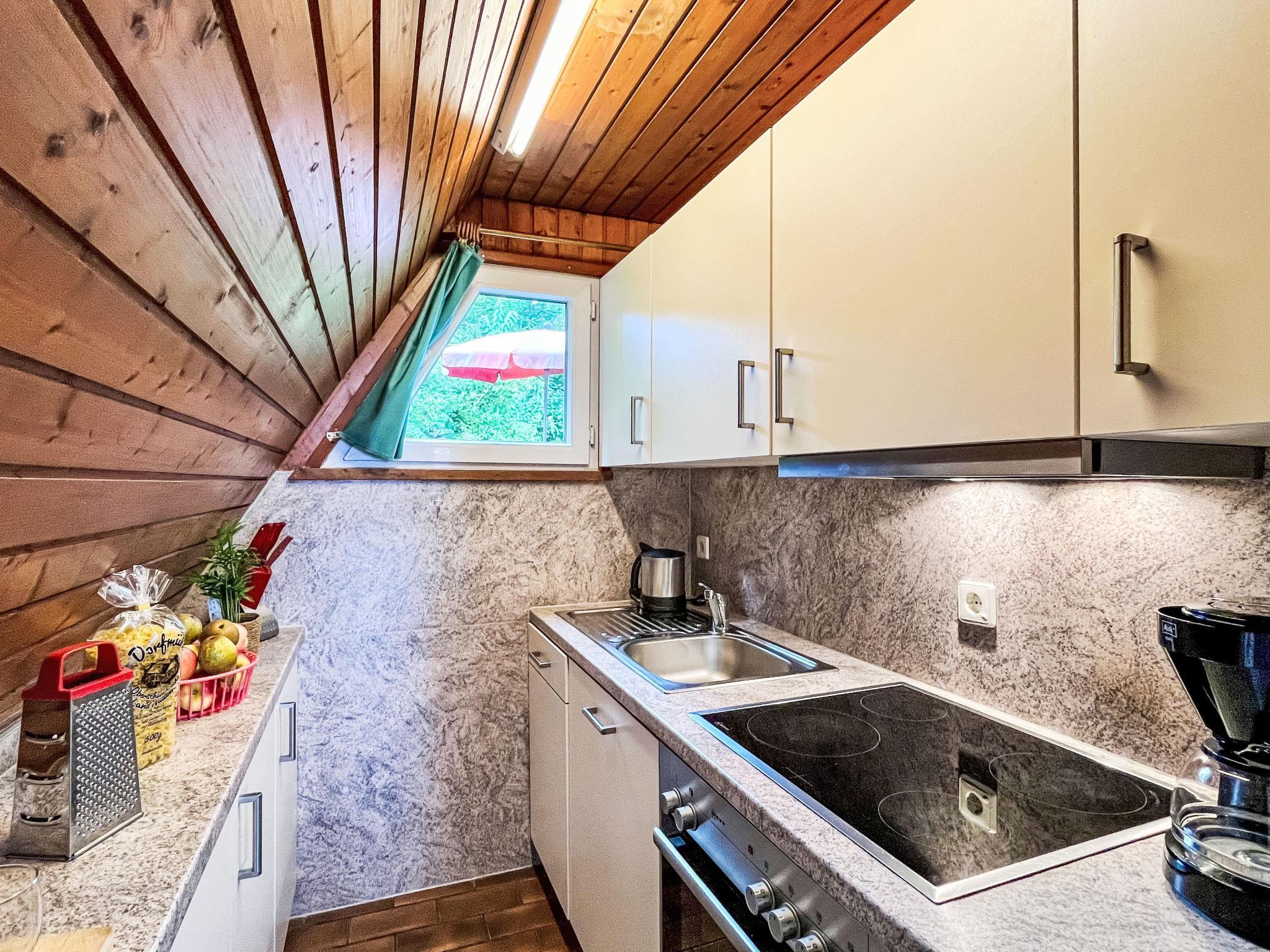 "Riedblick I", 3-room house 70 m2 on 2 levels. Object suitable for 2 adults + 3 children. Simple and wooden furniture furnishings: living/dining room with sloping ceilings with dining table and TV (flat screen). Exit to the balcony. Small kitchen (oven, dishwasher, 4 ceramic glass hob hotplates, toaster, kettle, electric coffee machine). Shower/WC. Top floor: (steep stair), 1 room with sloping ceilings with 2 beds (80 cm, length 200 cm). 1 room with sloping ceilings with 3 beds (75 cm, length 200 cm). Electric heating. Balcony, patio 12 m2, lawn 40 m2. Balcony furniture, electric barbecue (portable). Beautiful view of the valley and the countryside. Facilities: children's high chair, baby cot. Internet (WiFi, free). Parking (2 cars) at the house. Please note: non-smokers only. Maximum 2 pets/ dogs allowed.