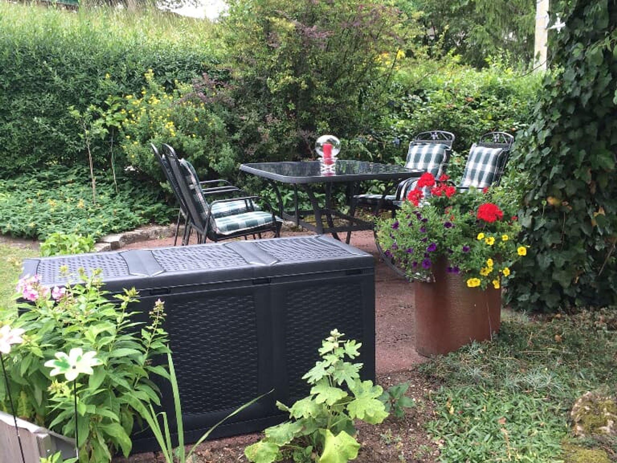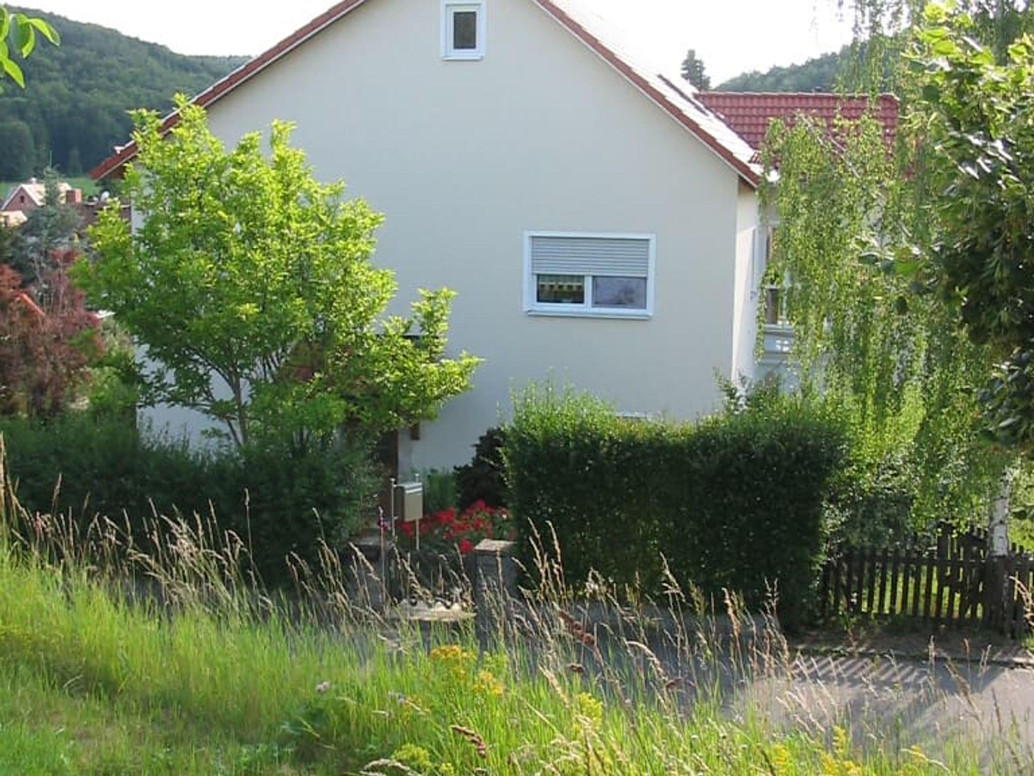 Die schöne Ferienwohnung befindet sich in ruhiger, naturnaher Lage und ist ideal für Freizeitaktivitäten in der Natur. Egal ob Wandern, Radfahren oder Klettern ist viel möglich. Ein schön angelegter Garten mit einer Sitzgruppe lädt zum Entspannen ein. Ein Freibad ist nur wenige Gehminuten entfernt. Auch für das leibliche Wohl soll gesorgt sein, denn im Dorf ist eine Bäckerei sowie eine Metzgerei vorhanden. Die Ferienwohnung selbst besteht aus Wohnzimmer mit Schlafcouch für zwei Personen, Küche (Kaffeepadmaschine, Filtermaschine, Wasserkocher, Toaster, Mikrowelle, Eierkocher, Geschirrspülmaschine, Waschmaschine), Schlafzimmer und Badezimmer. Zusätzlich vorhanden sind noch Handtücher und Bettwäsche sowie ein Föhn, ein Bügeleisen, ein Kinderhochstuhl, eine Spielesammlung und kostenfreies WLAN. Ein Kinderreisebett ist auf Anfrage verfügbar. Bitte teilen Sie uns vor Anreise mit, ob die Couch als Schlafcouch benutzt wird.