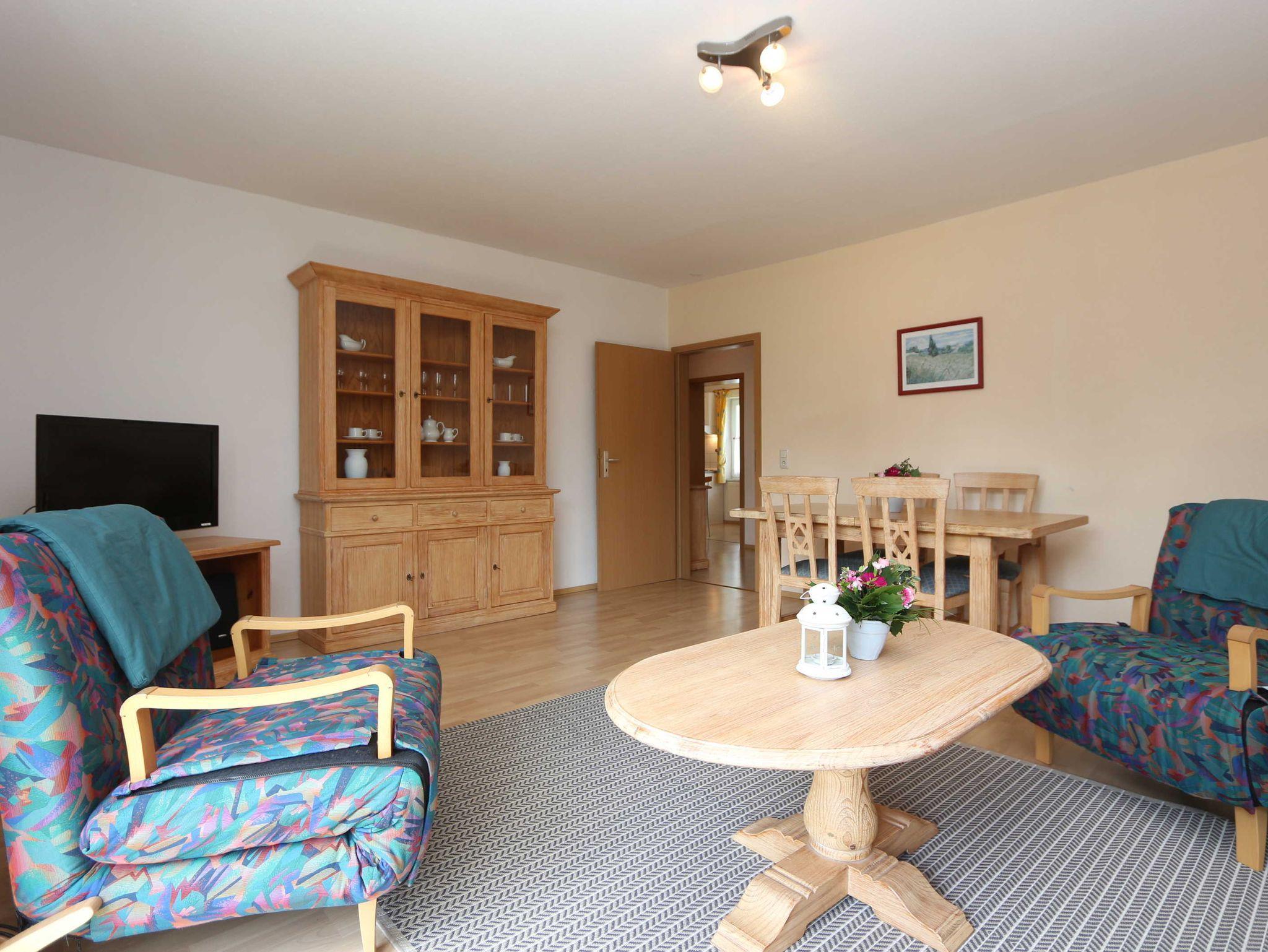• Wohnzimmer mit Schlafsofa und 2 Schlafsesseln, Flachbildfernseher, CD-Player.