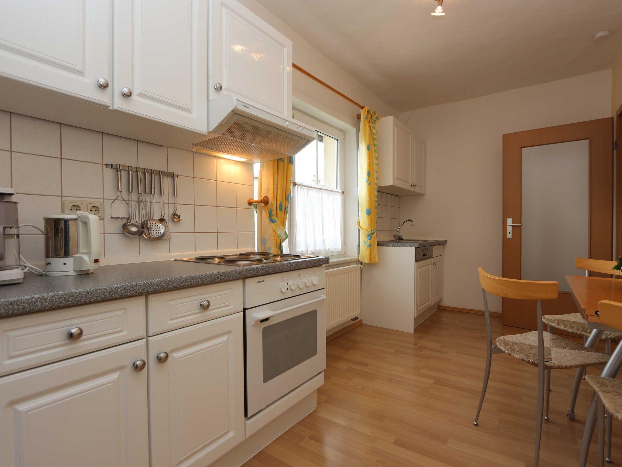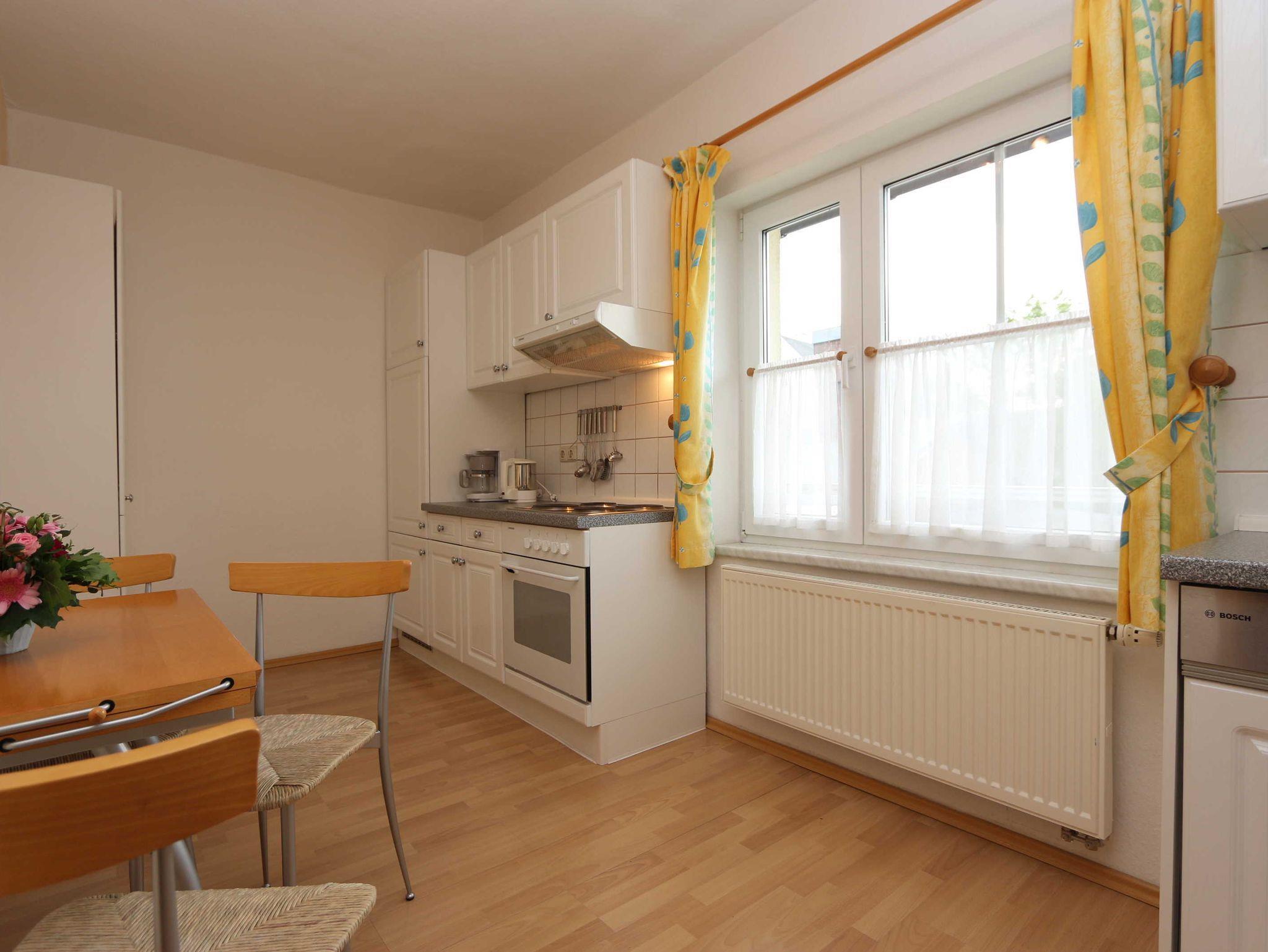 • Küche mit EBK und 4-Platten-Kochfeld, Herd, Spülmaschine, Kühlschrank mit Gefrierfach, Wasserkocher, Kaffeemaschine, Toaster, Mixer und ausreichend Geschirr und einem Essplatz für 4 Personen.
