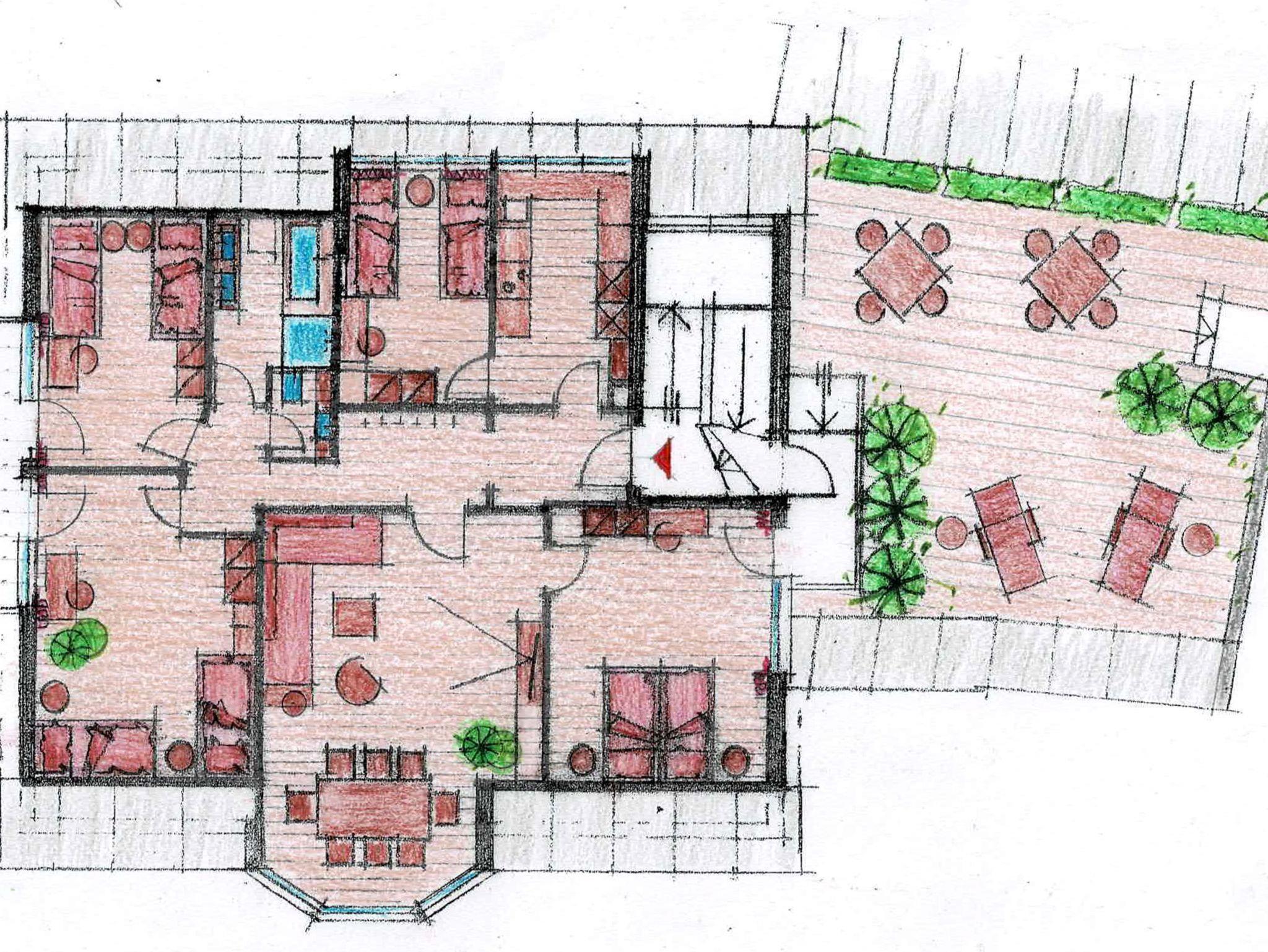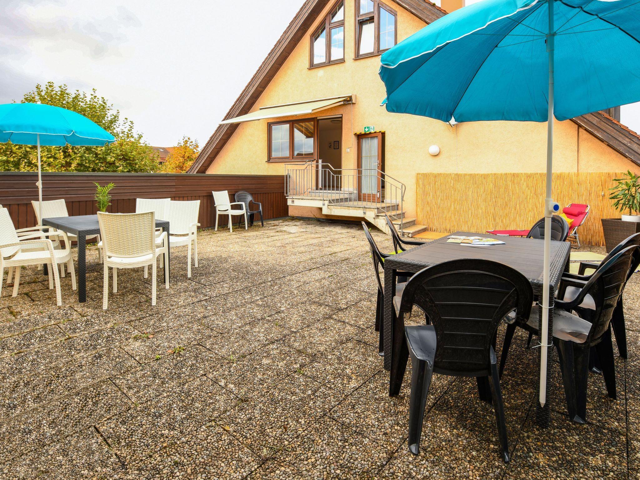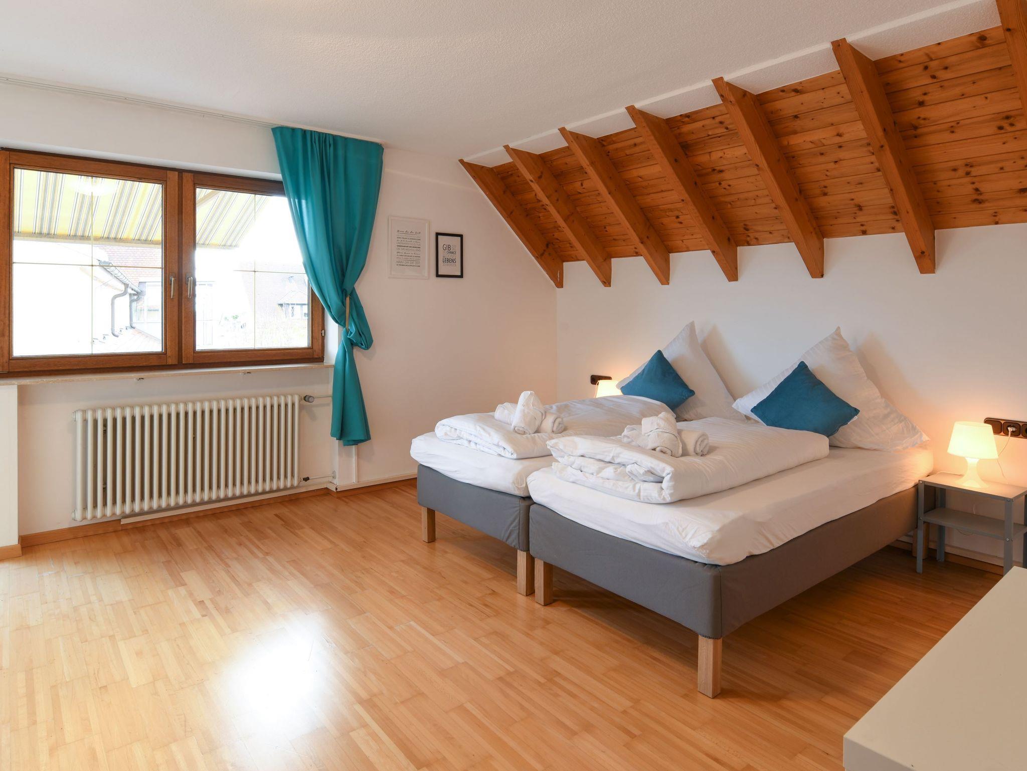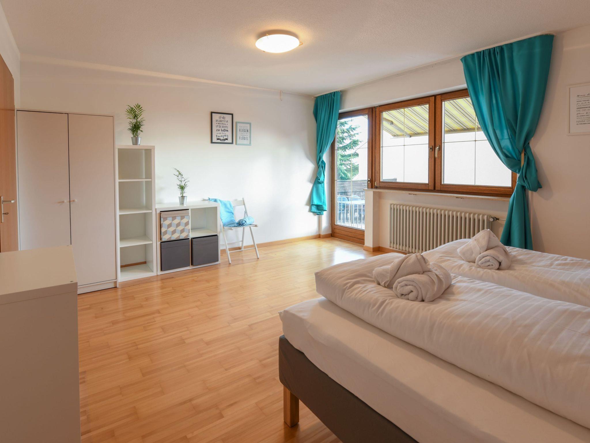 Von Ihrem privaten Stellplatz aus gehen Sie direkt in das Treppenhaus hinauf in den 3. Stock, wo sich Ihre 135 m² große Ferienwohnung mit Teil-Seesicht befindet. Die Ferienwohnung besticht durch ihre Größe sowie Anzahl an Zimmern. Große Fensterfronten, geräumige Küche, 1 Balkon und 1 Dachterrasse in Südrichtung geben der Wohnung ihren anspruchsvollen Komfort. So betreten Sie einen geräumigen, großen Flur, ausgestattet mit Garderobe, großem Garderobenspiegel und Sitzgelegenheit. Direkt am Flur angrenzend befindet sich zur Rechten die große, vollausgestattete Küche. Diese beinhaltet eine große Kühl-Gefrierkombination, Spülmaschine, Ceran-Herd, Backofen sowie Filterkaffeemaschine, Toaster und Wasserkocher. Von der Küche aus gelangen Sie in das erste kleine Schlafzimmer. Das Schlafzimmer ist ausgestattet mit einem Doppelbett (180x200 cm) und einem Kleiderschrank. Das Doppelbett kann getrennt werden, so dass zwei Einzelbetten mit einer Größe von 90x200 cm entstehen. Im hinteren Teil der Ferienwohnung, Richtung Osten gelegen, befinden sich das zweite und dritte Schlafzimmer. Beide Schlafzimmer sind sehr geräumig und haben Zugang zu einem eigenen Balkon. Die Schlafzimmer sind jeweils ausgestattet mit einem Doppelbett (180x200 cm) und einem Kleiderschrank. Die Doppelbetten können getrennt werden, so dass jeweils zwei Einzelbetten mit einer Größe von 90x200 cm entstehen. Mittig des Flurs befindet sich das separate WC mit Waschbecken und Spiegel. Gleich nebenan folgt das original gehaltene Badezimmer, ausgestattet mit großem Fenster, Dusche, Badewanne, 2 Waschbecken, Spiegel, Haartrockner und Waschmaschine. Direkt auf der linken Seite des Flurs, gegenüber des ersten Schlafzimmers, befindet sich das Herzstück der Ferienwohnung: Ein lichtdurchflutetes, mit einer runden Fensterfront ausgestattetes Wohnzimmer lädt ein zum Verweilen. Direkt an der Fensterfront befindet sich ein großer Esstisch mit Platz für 8 Personen. Zwei Sofabetten (90x200 cm) sowie Sessel laden ein zum Verweilen für die ganze Familie. Der große Smart TV lässt keine Wünsche offen für einen guten Film für alle. Durch das Wohnzimmer hindurch, Richtung Süden, befindet sich das vierte Schlafzimmer mit direktem Zugang zur Dachterrasse. Das geräumige Schlafzimmer ist ausgestattet mit einem Doppelbett (180x200 cm) und einem Kleiderschrank. Das Doppelbett kann getrennt werden, so dass zwei Einzelbetten mit einer Größe von 90x200 cm entstehen. Ein Highlight der komfortablen Ferienwohnung ist die ca. 30 m² große Dachterrasse mit Teil-Seesicht. Der Zugang geht entweder über das vierte Schlafzimmer oder das Treppenhaus. Die Dachterrasse kann von der oberen Ferienwohnung ?Immenstaad 2? mitgenutzt werden. Die Terrasse ist ausgestattet mit Tischen, Stühlen, Liegeecke, Sonnenschirmen uvm. Kleine Ballspiele können sogar auf der Terrasse, über den Dächern von Immenstaad, ausgeübt werden und die Sonne lädt von früh bis spät ein.