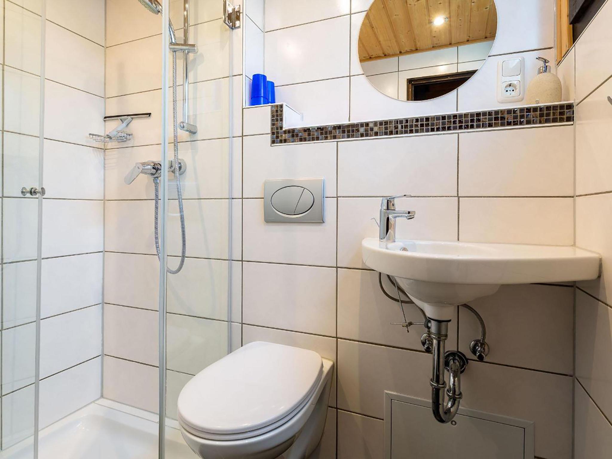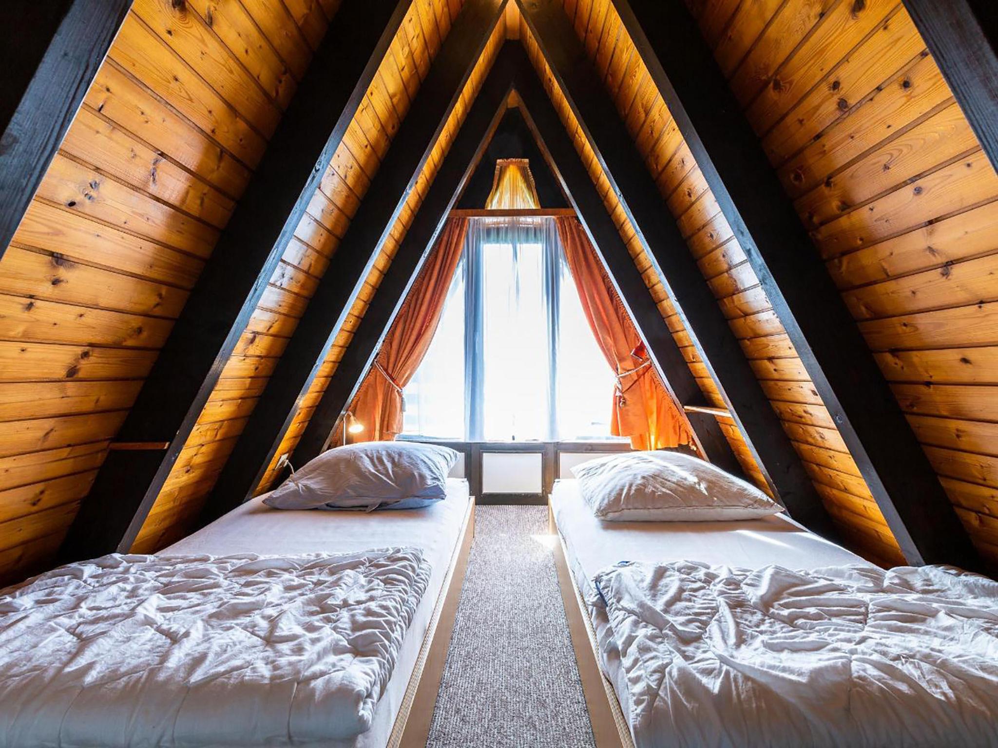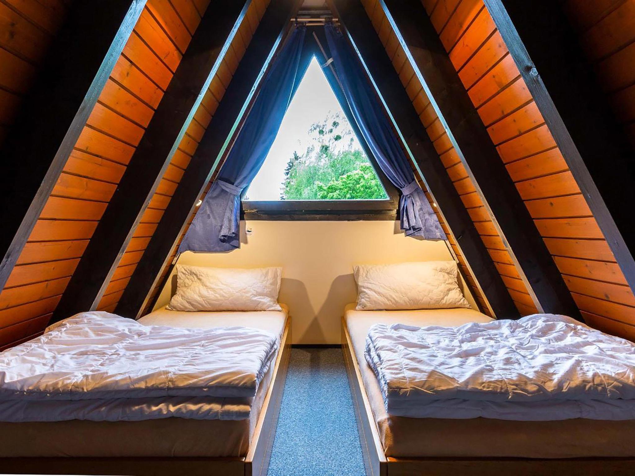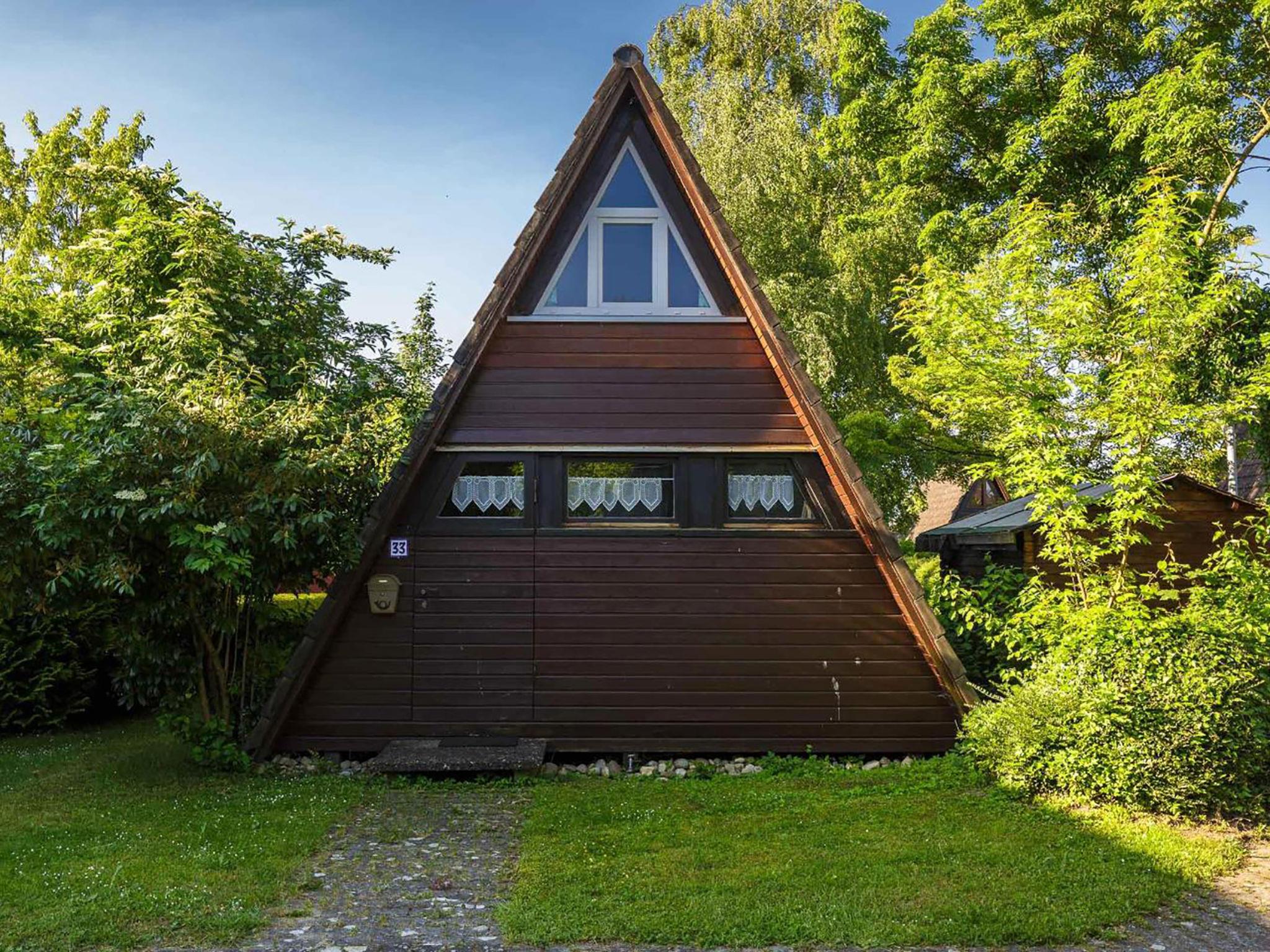 3-room house 50 m2 on 2 levels, on the ground floor. With sloping ceilings: living/dining room with satellite TV and radio. Exit to the garden, to the terrace. With sloping ceilings, open kitchen (2 hot plates, electric coffee machine). Shower/WC. Top floor: (steep stair), 2 rooms with sloping ceilings, each room with 2 beds. Electric heating. Terrace furniture. Facilities: Internet (WiFi, free). Please note: non-smoking house. Maximum 1 small pet/ dog allowed. A-frame house in wood construction.